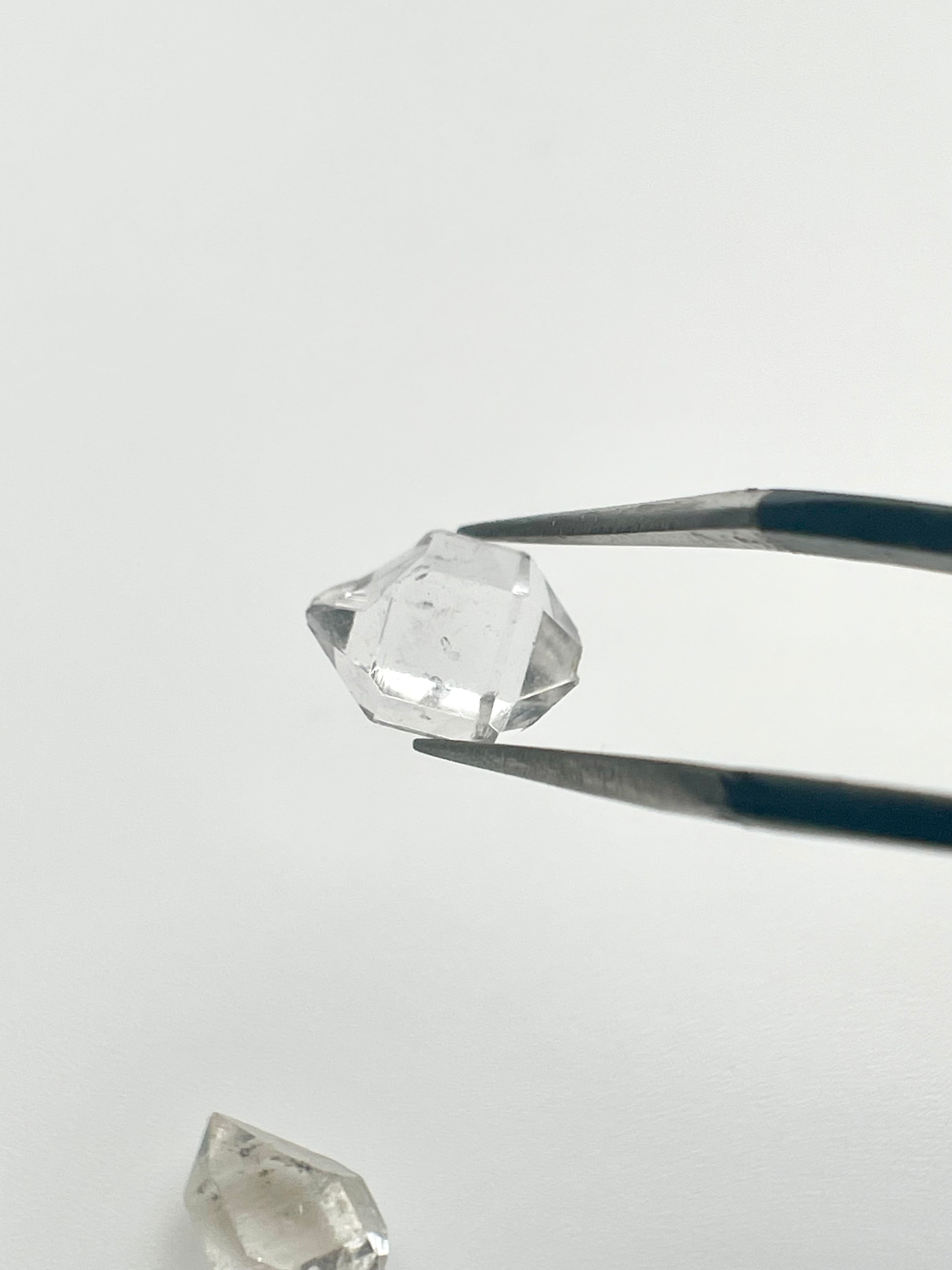ニューヨーク州ハーキマー地区でのみ採掘される特別な水晶、ハーキマーダイヤモンド のペアセットです。天然のダブルターミネーテッド(両剣)形状が特徴で、まるでダイヤモンドのような強い輝きを持ちます。