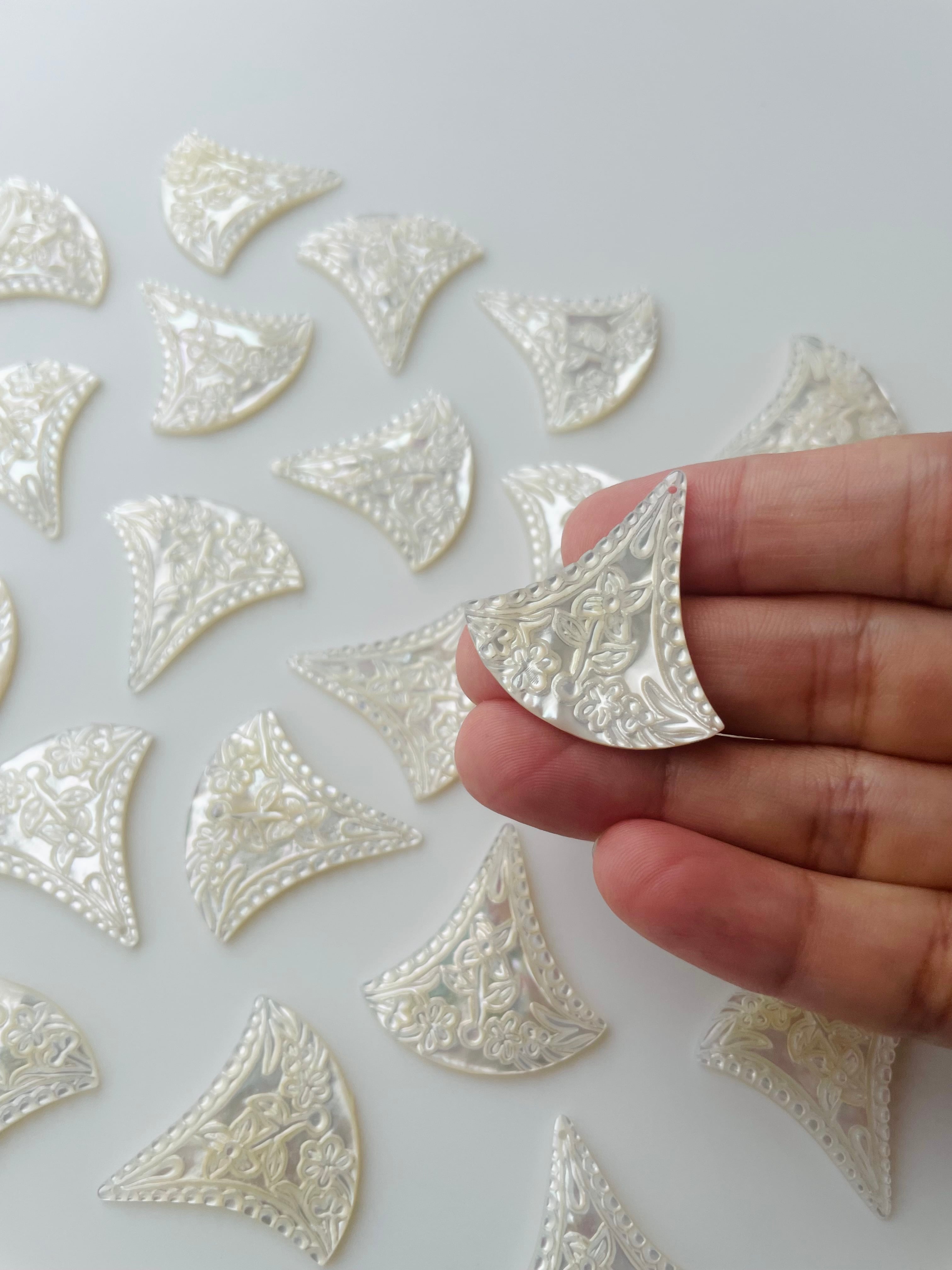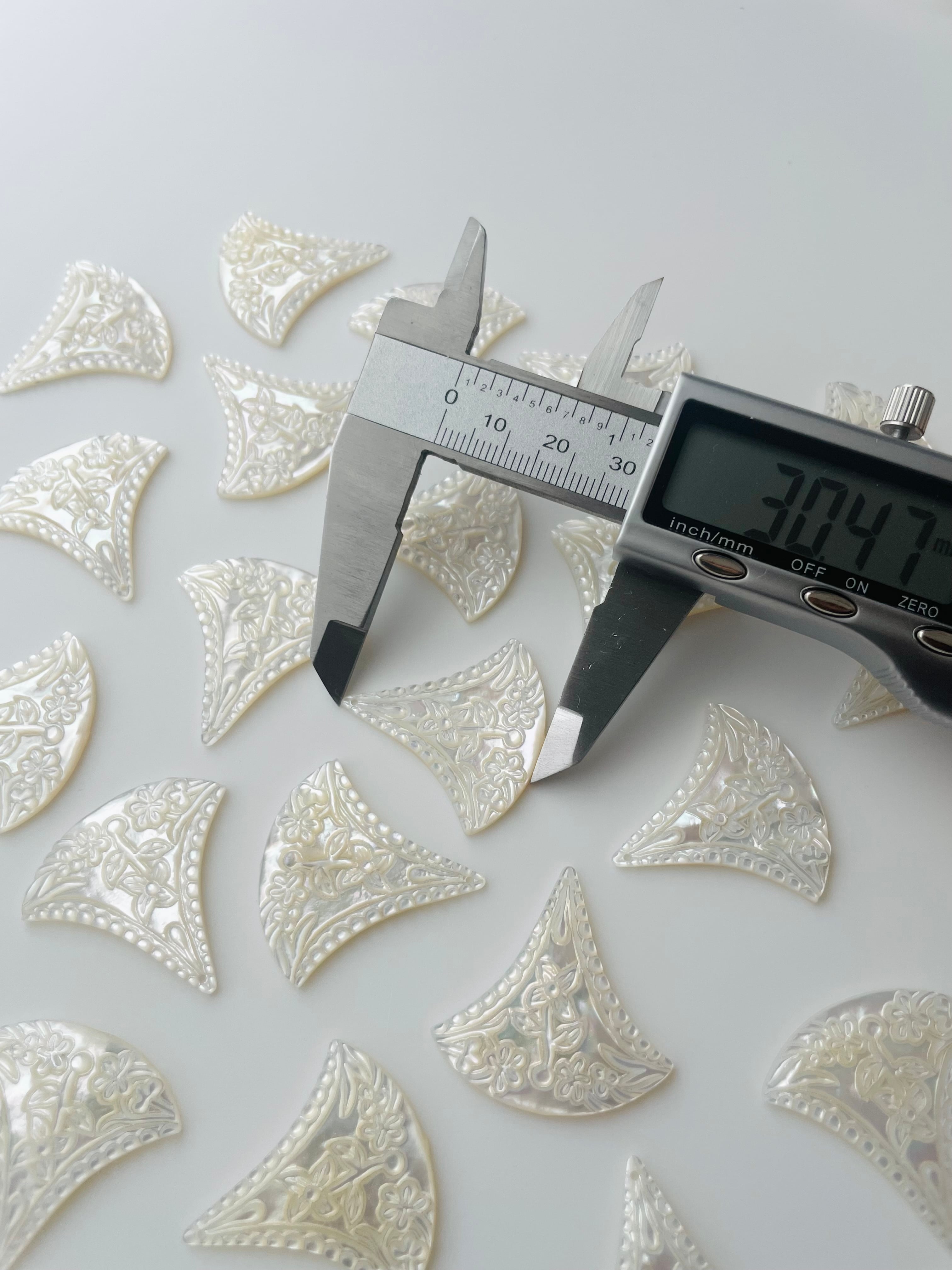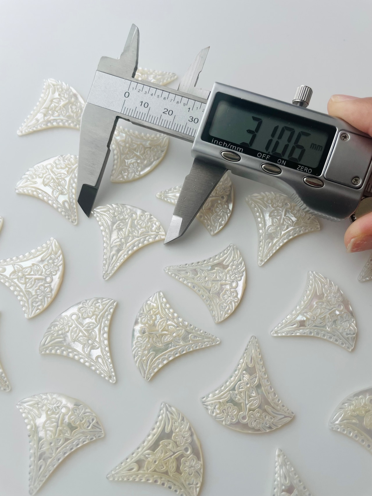 白蝶貝 カービングシェル プレート ホワイトシェル 扇 フラワーカービング 白