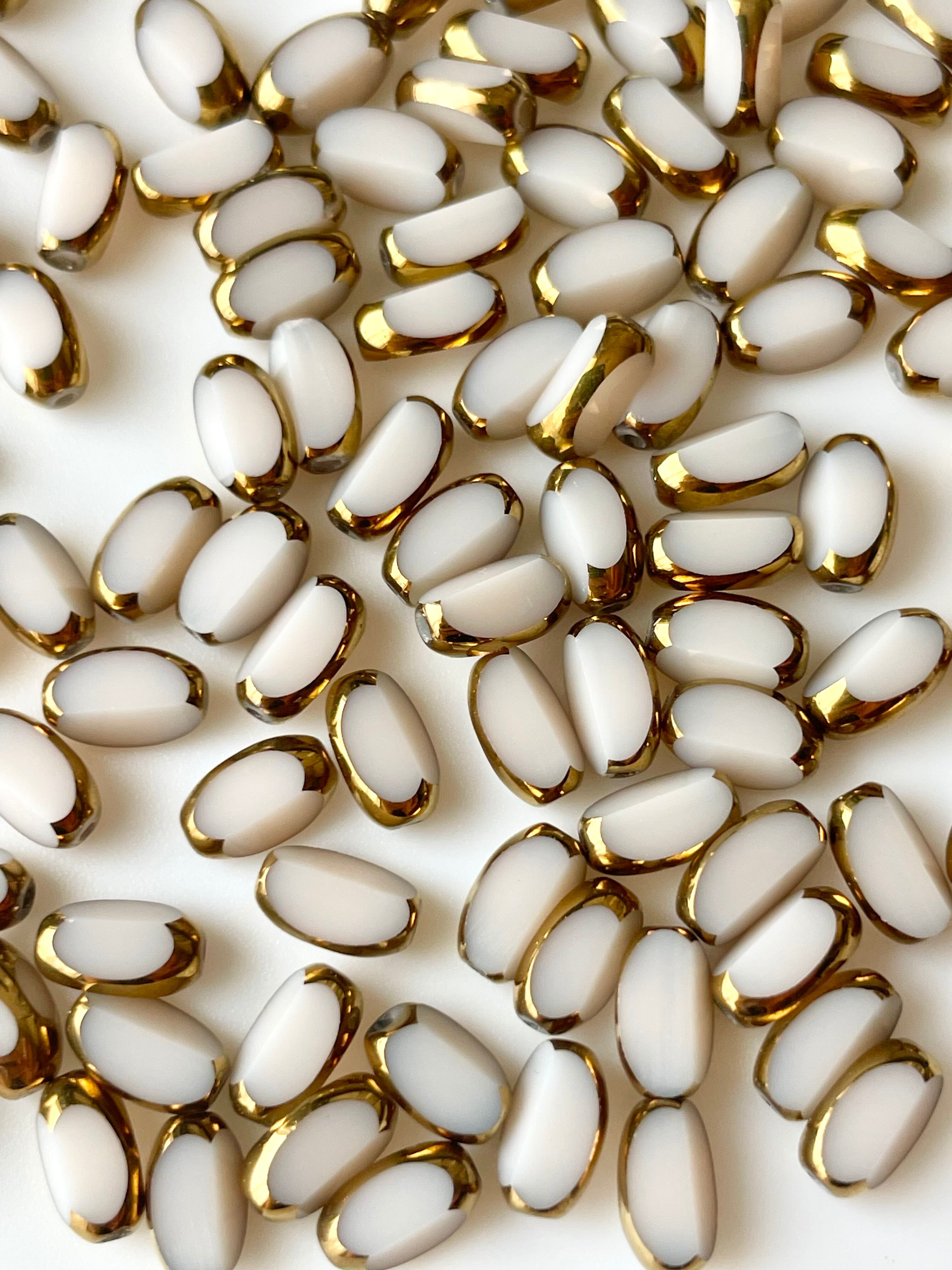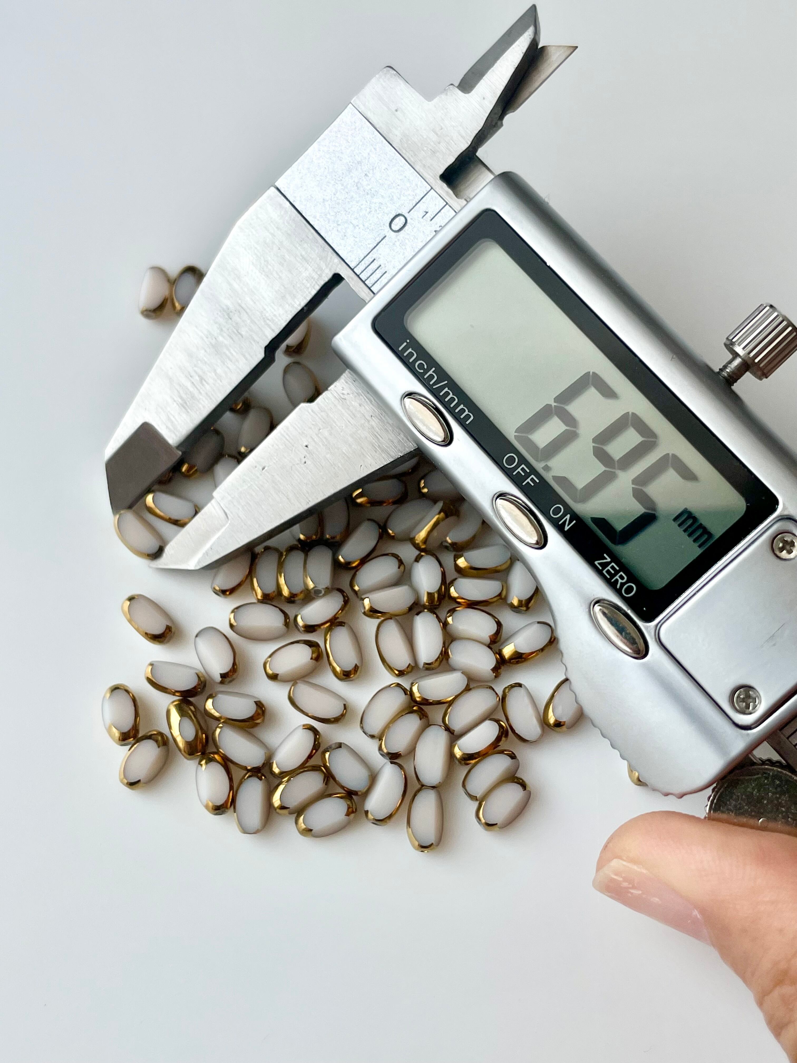 柔らかなミルキーホワイトが優しい印象の、カット入りオーバル型ガラスビーズ。