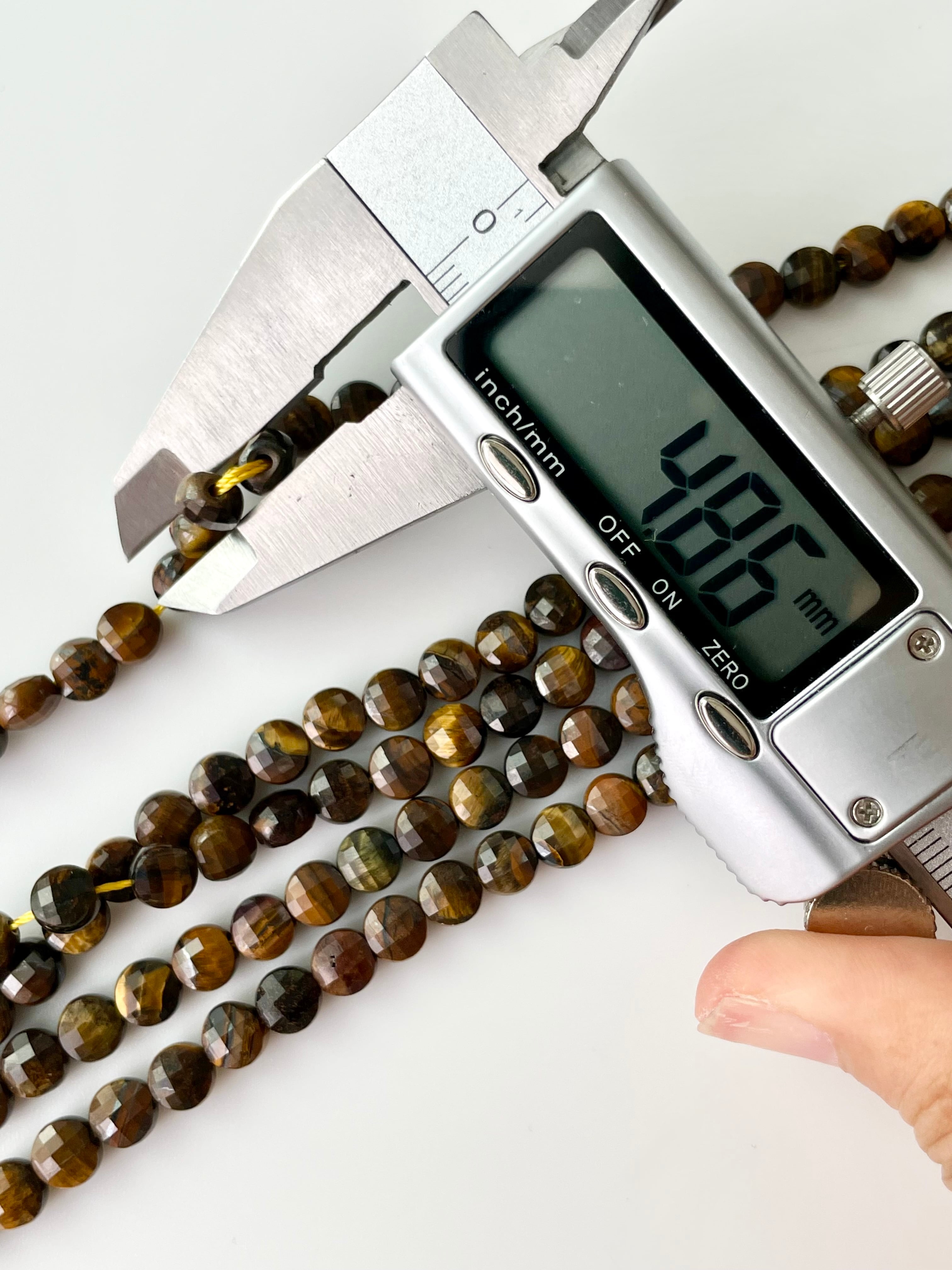 天然石ビーズ タイガーアイ フラットラウンドカット 約6mm 厚み約4mm 1連