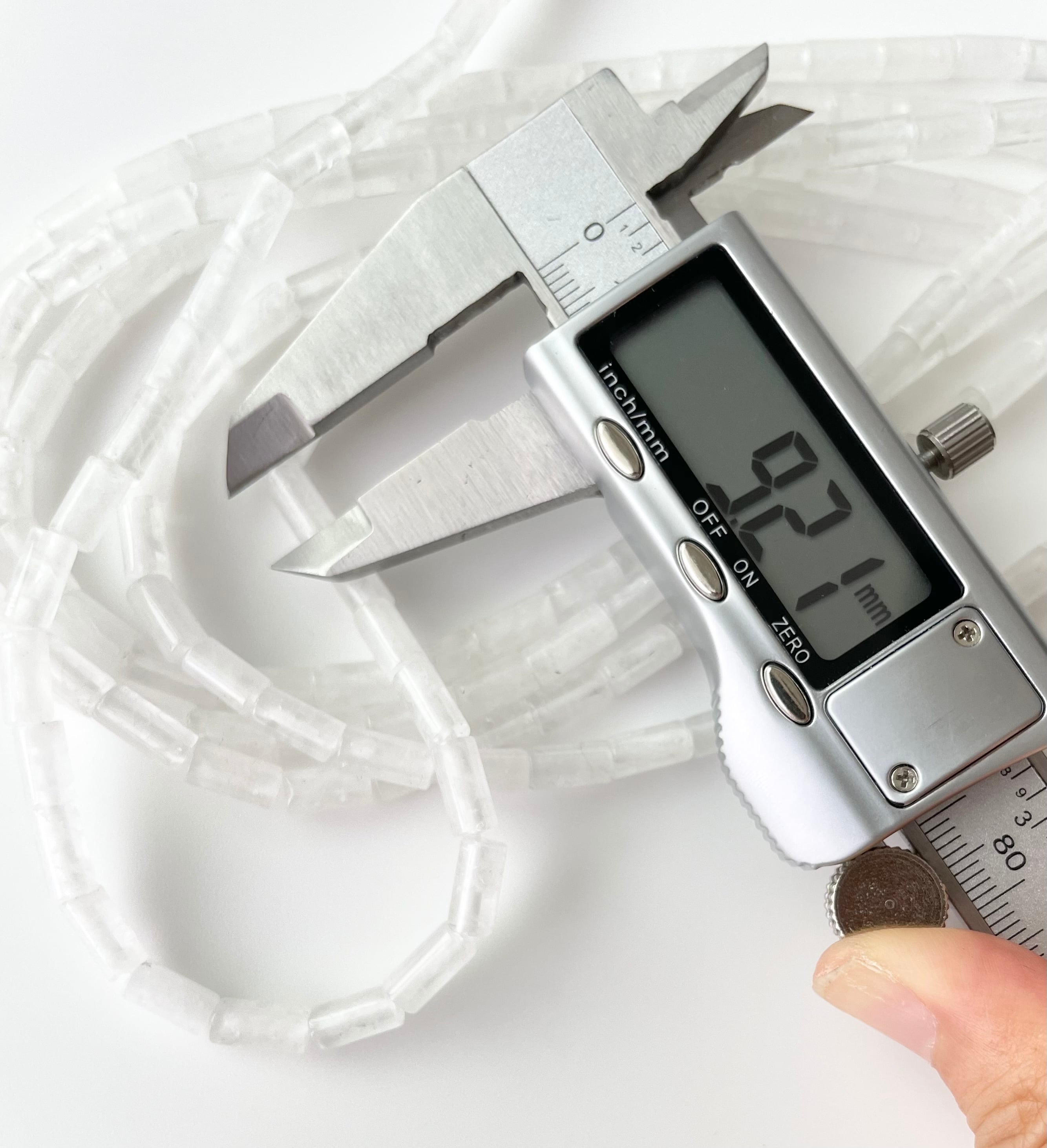 やわらかな白濁と無色透明の輝きが混ざり合う、天然水晶のチューブ型ビーズです。透明感の中にミルキーホワイトが広がるため、やさしく落ち着いた雰囲気の作品に仕上がります。丸玉よりもすっきりとしたフォルムで、シンプルながら存在感を放つデザイン。光の加減で白い部分と透明部分が織りなすコントラストが美しく、他の天然石や金属パーツとの相性も抜群です。浄化やリセットの意味合いを持つ石としても人気で、ナチュラルで上品なアクセサリー作りにぴったりの素材です。