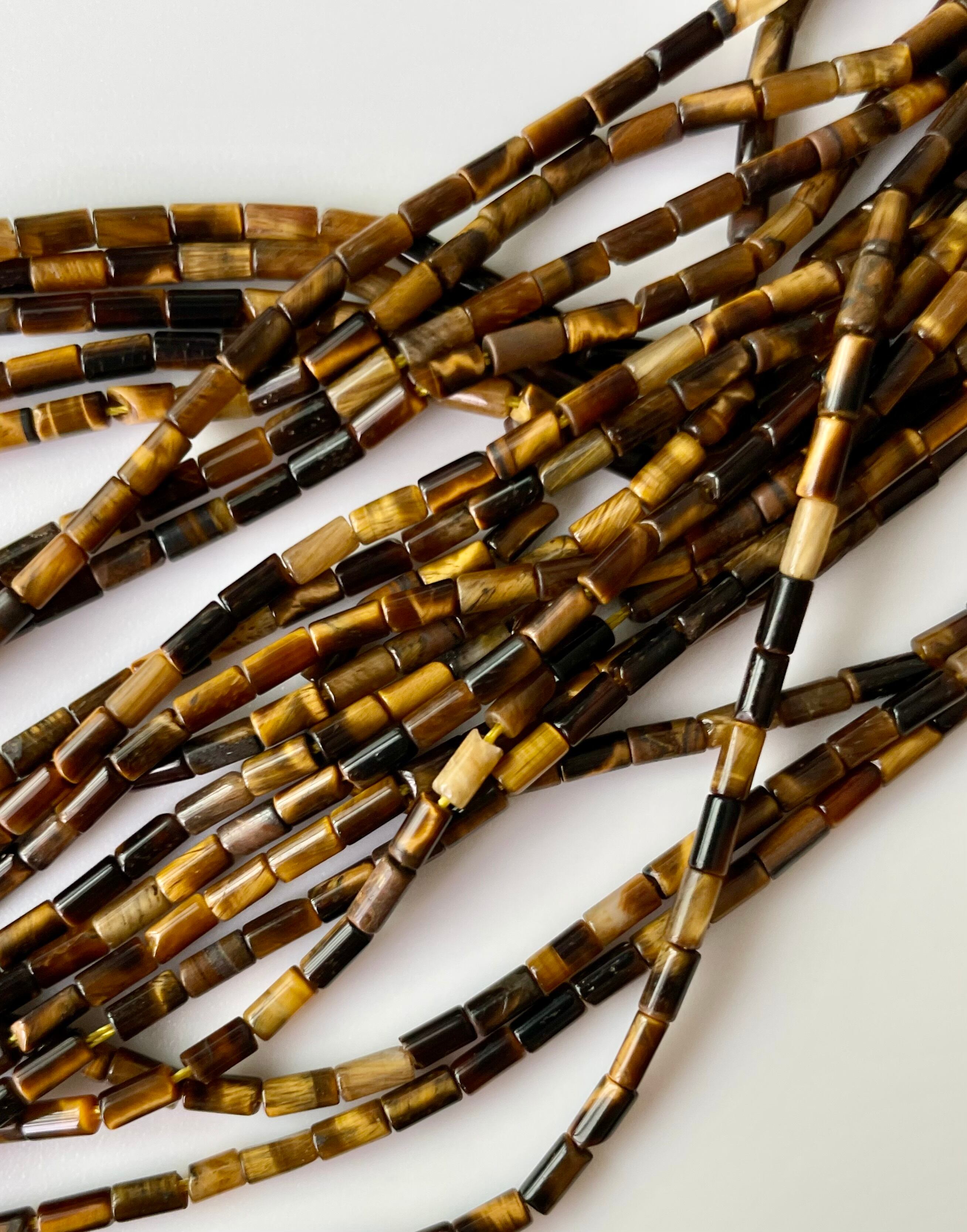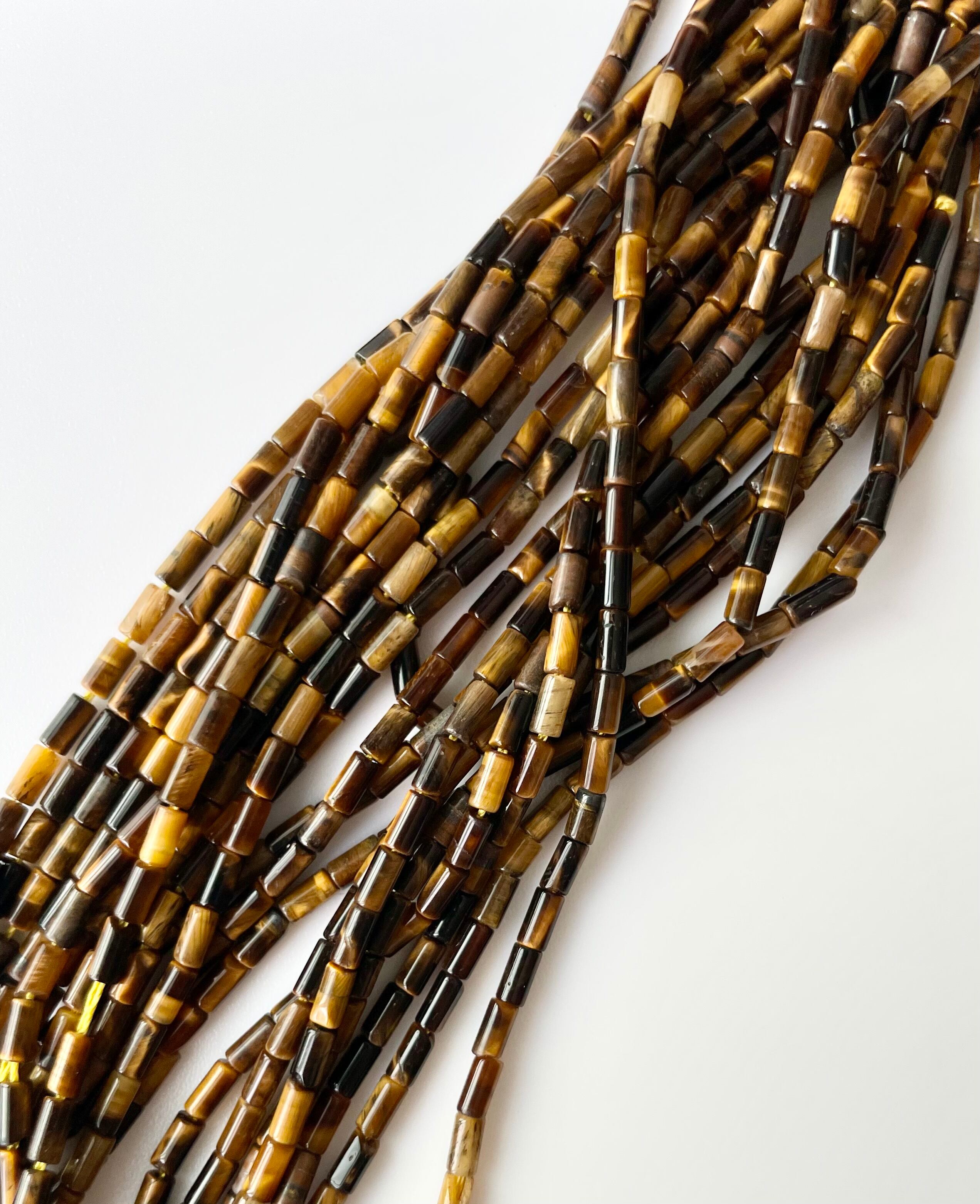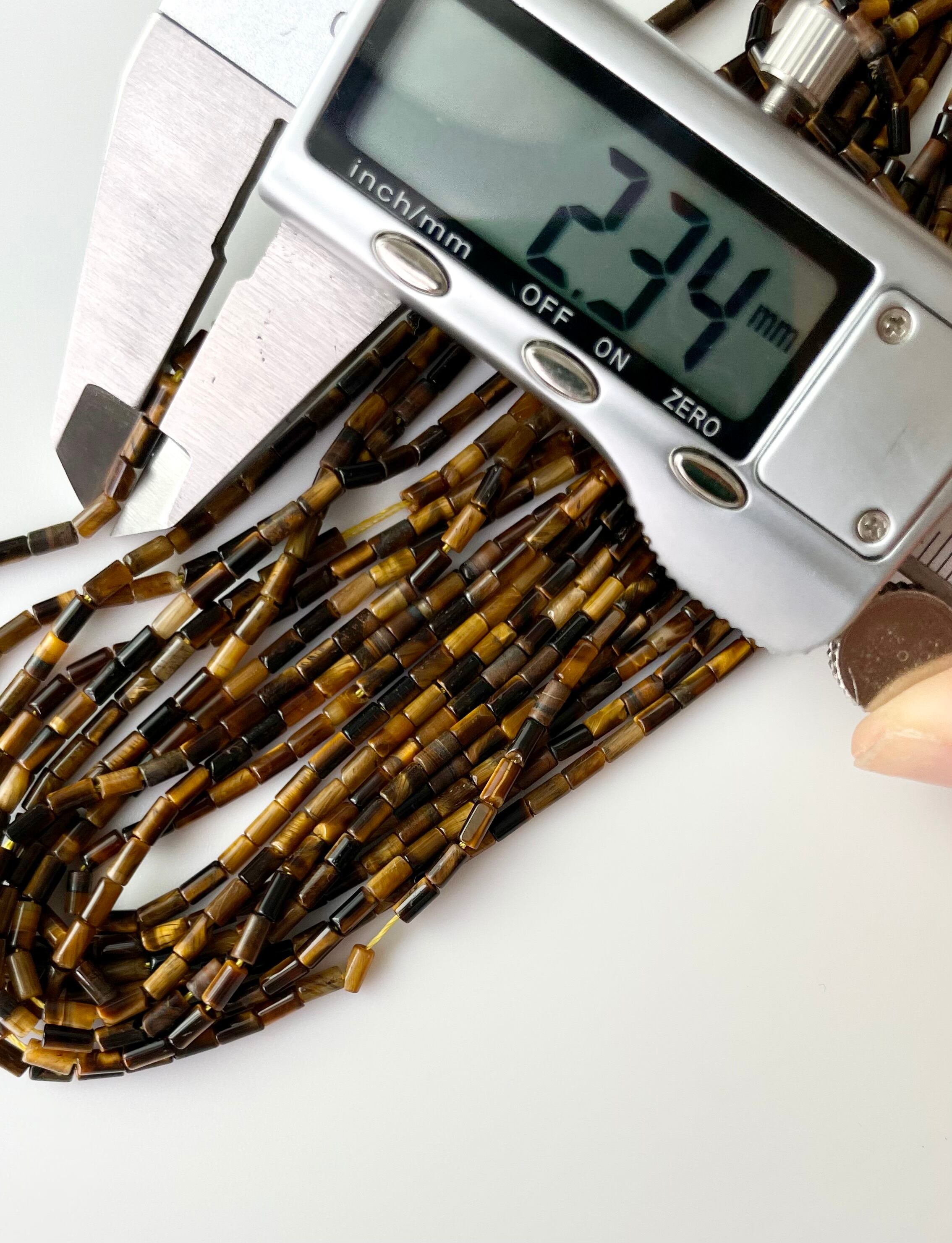 天然石ビーズ タイガーアイ 小粒チューブ型 約2×4mm 1連38cm