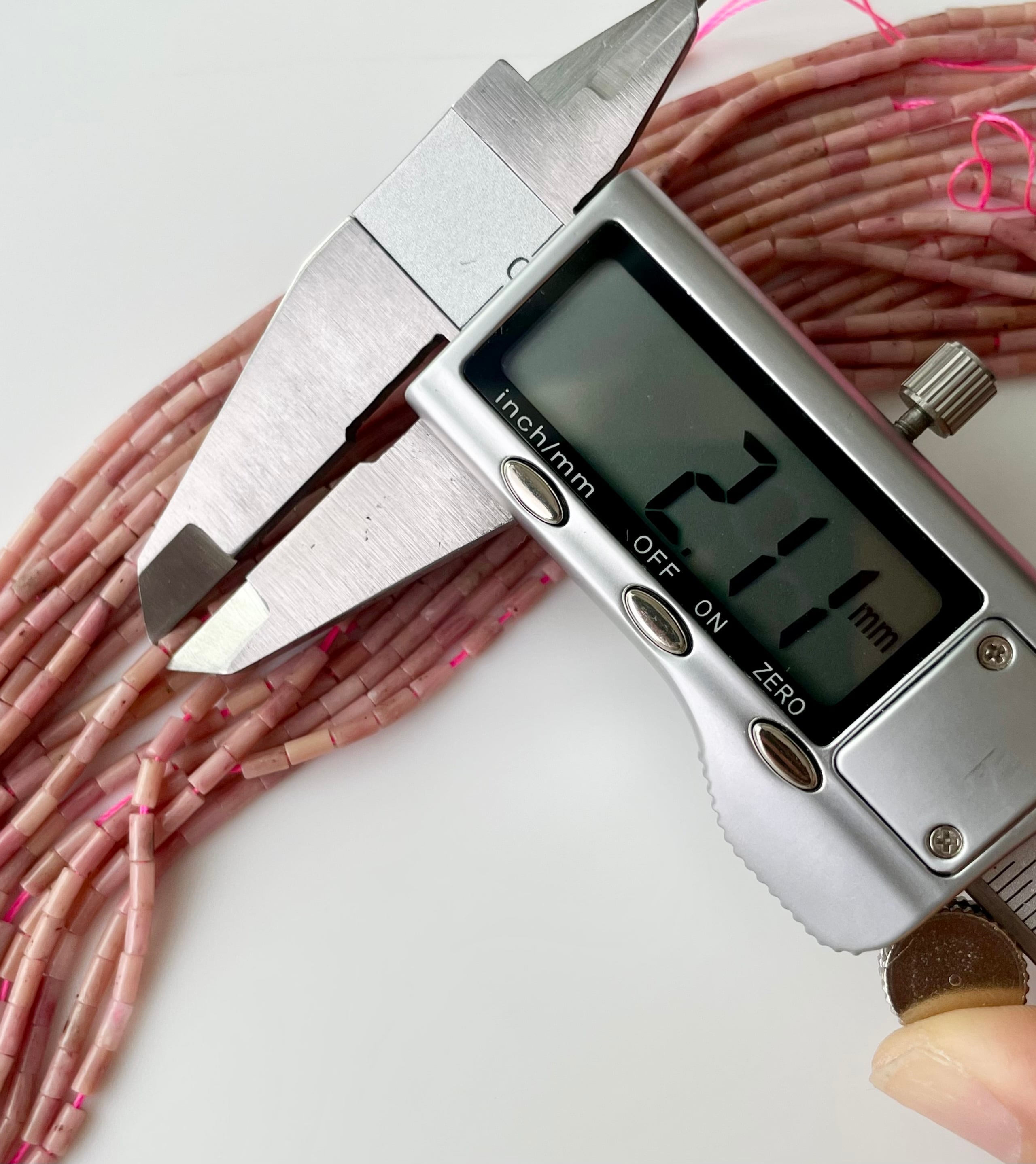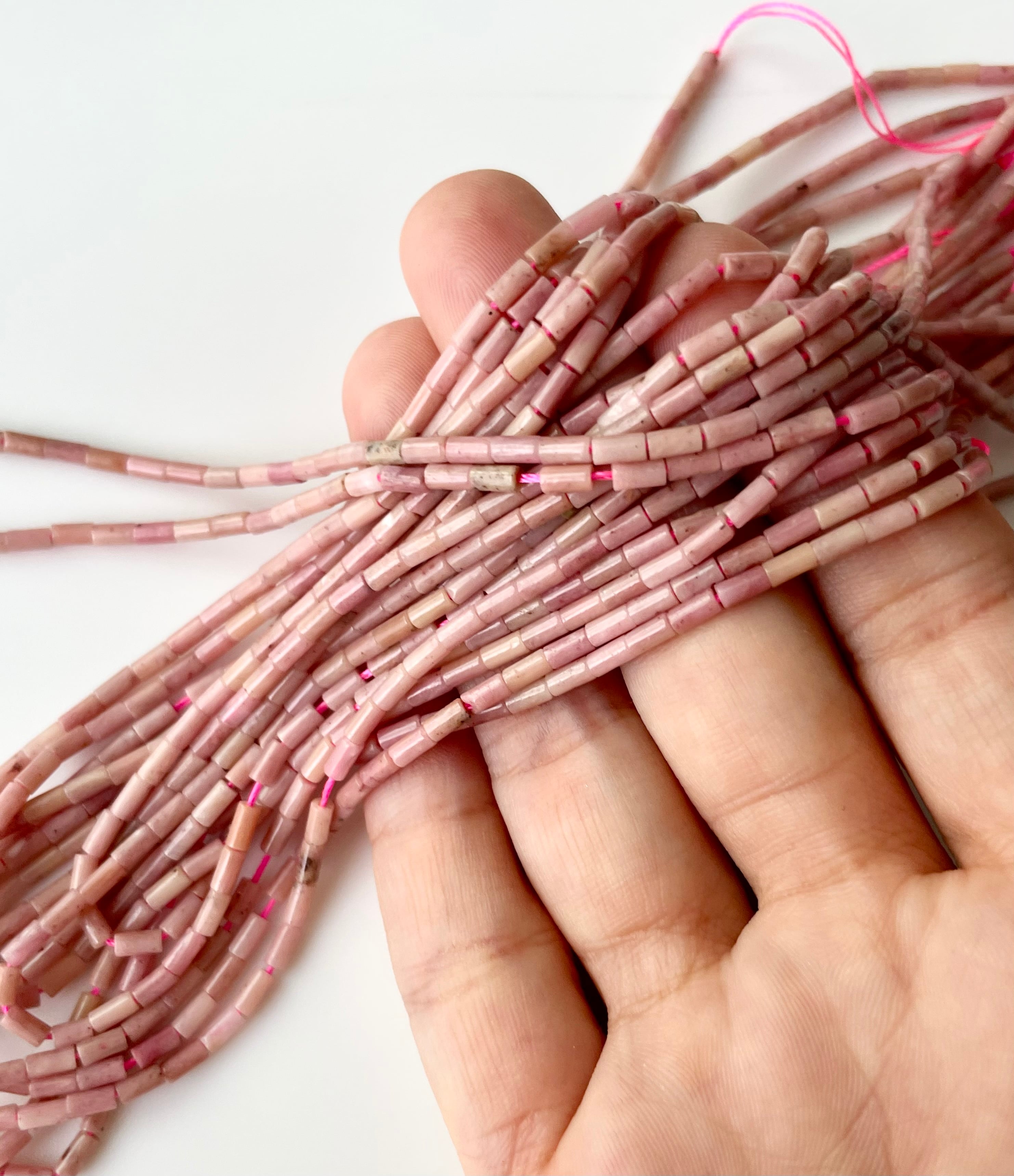 天然石ビーズ ロードナイト 小粒チューブ型 約2×4mm 1連38cm