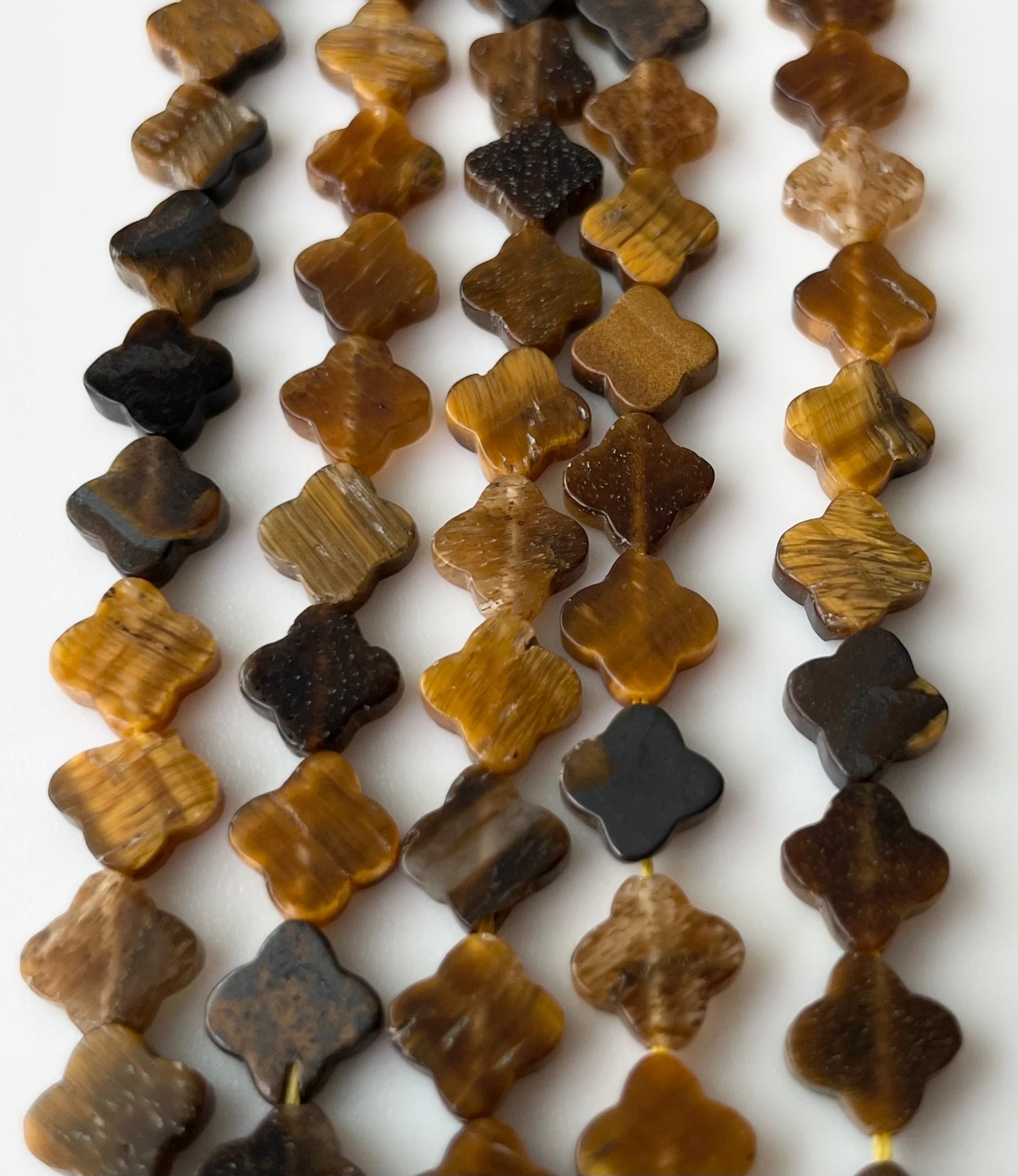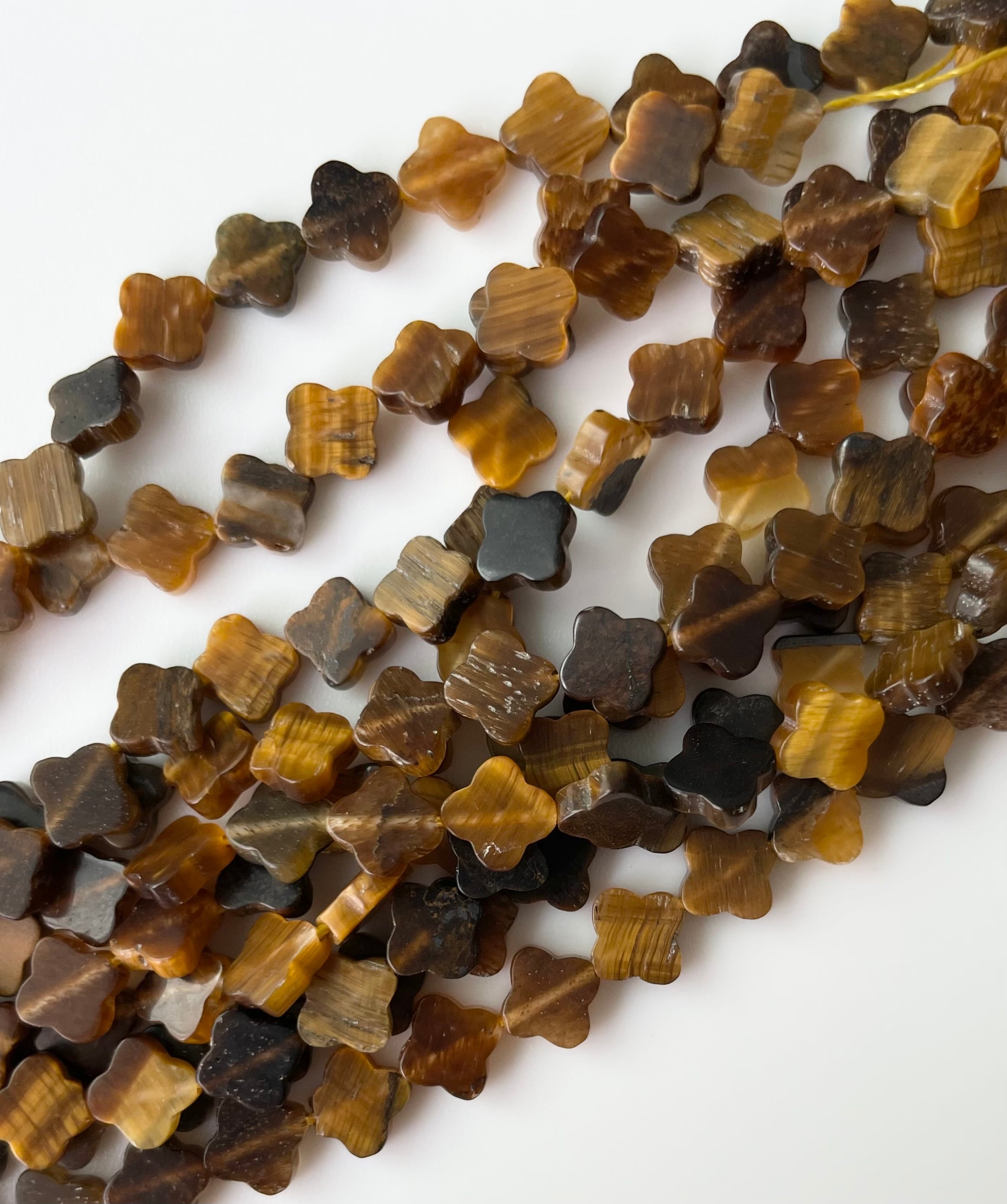 天然石ビーズ タイガーアイ 小粒クローバー型 約6mm 1連37cm