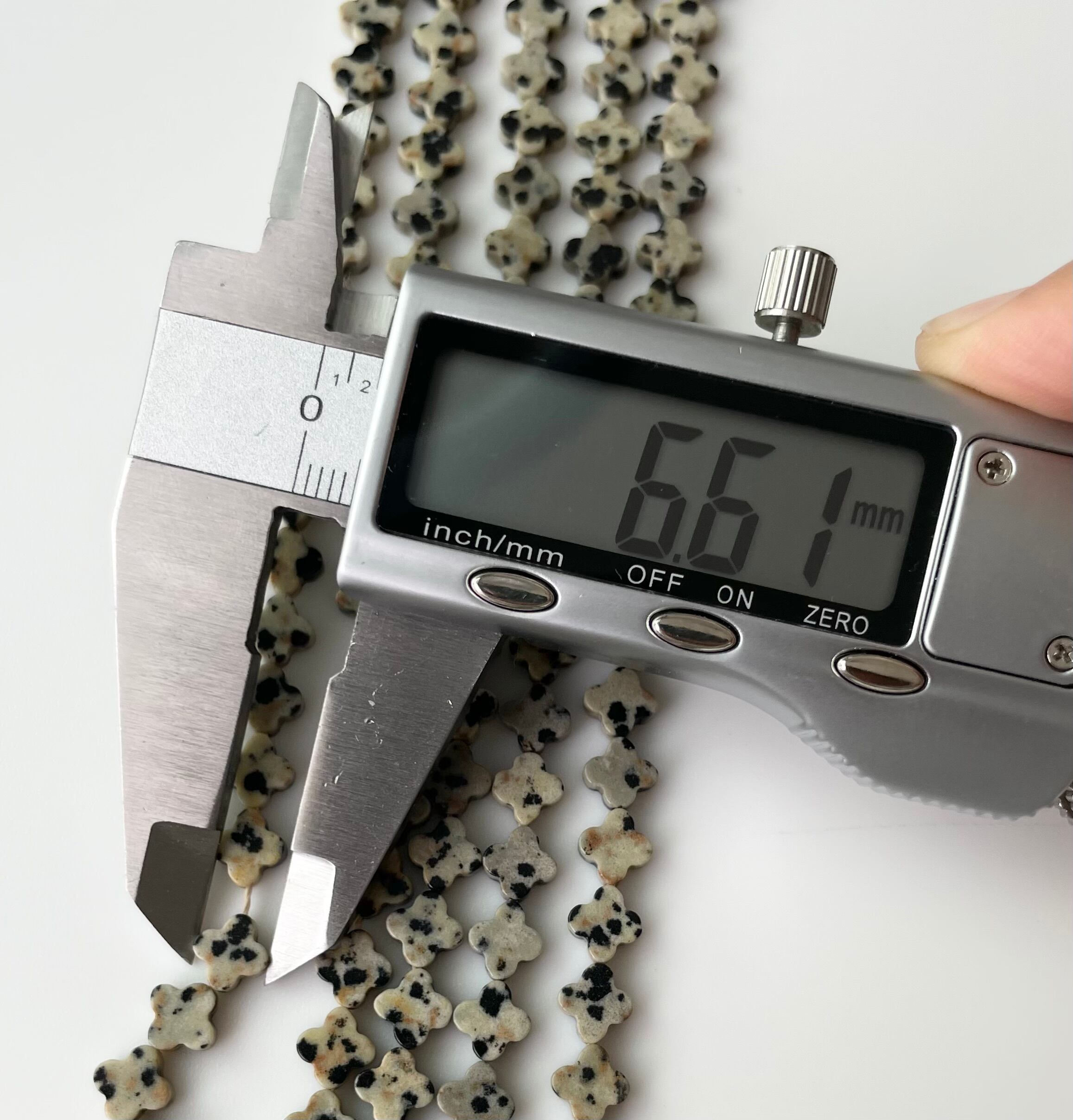 天然石ビーズ ダルメシアンジャスパー 小粒クローバー型 約6mm 1連37cm