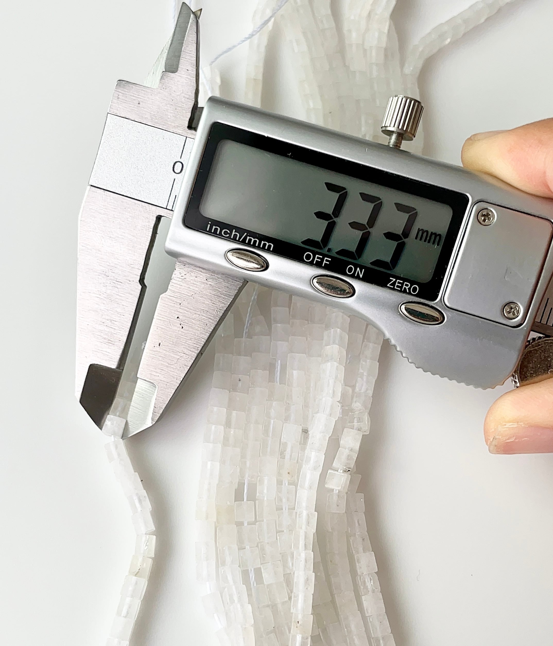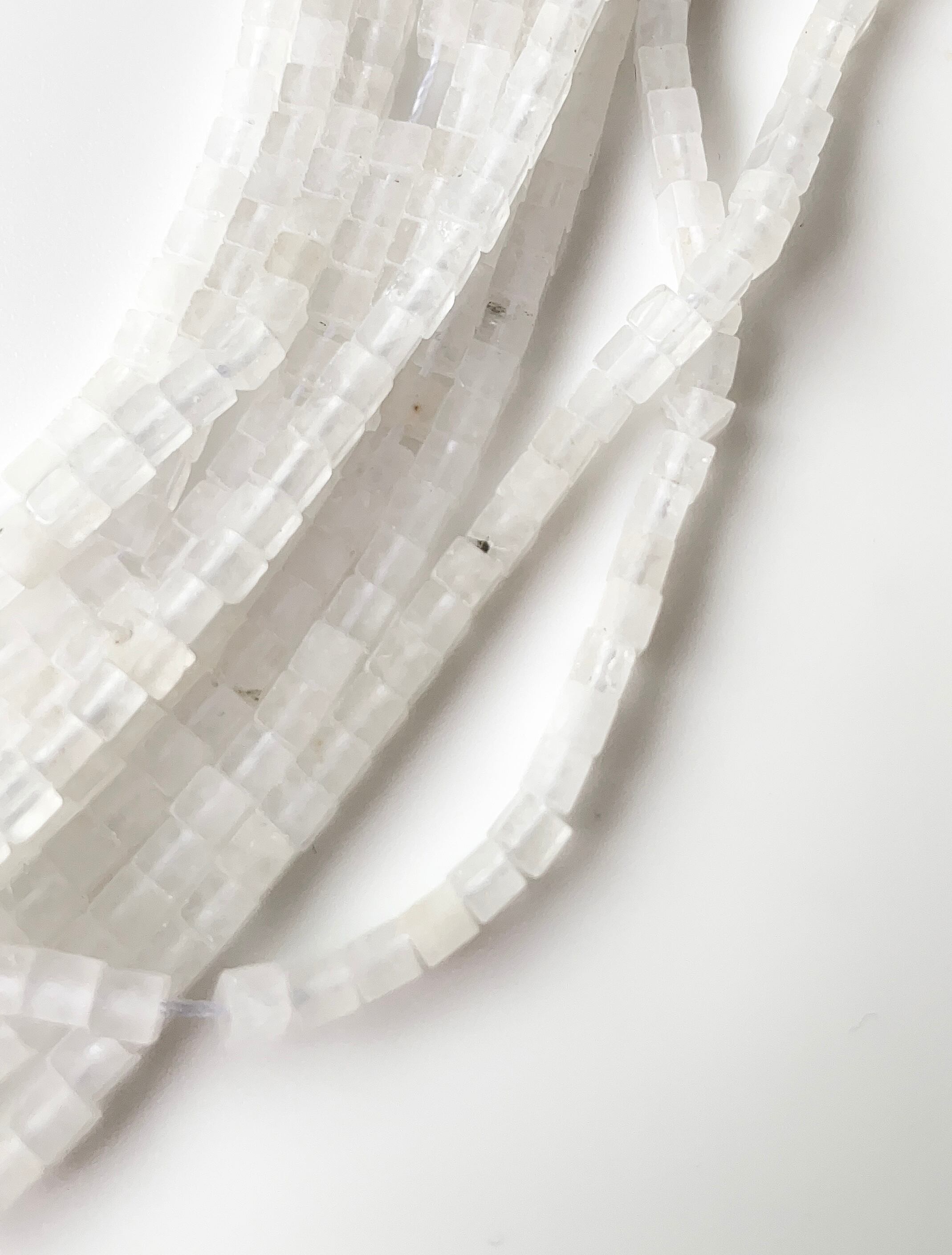 やわらかな白濁と透明感が美しい天然水晶を、小粒のキューブカット(シュガーカット)でセレクトしました。細やかなカット面が光を受けてキラキラと輝き、作品に上品で柔らかな表情をプラスします。白濁部分が多めのため、やさしく落ち着いた雰囲気のデザインに仕上がります。浄化やリセットの意味を持つ石としても人気で、ブレスレットやネックレス、ピアスのアクセントなど幅広く活躍する万能素材です。