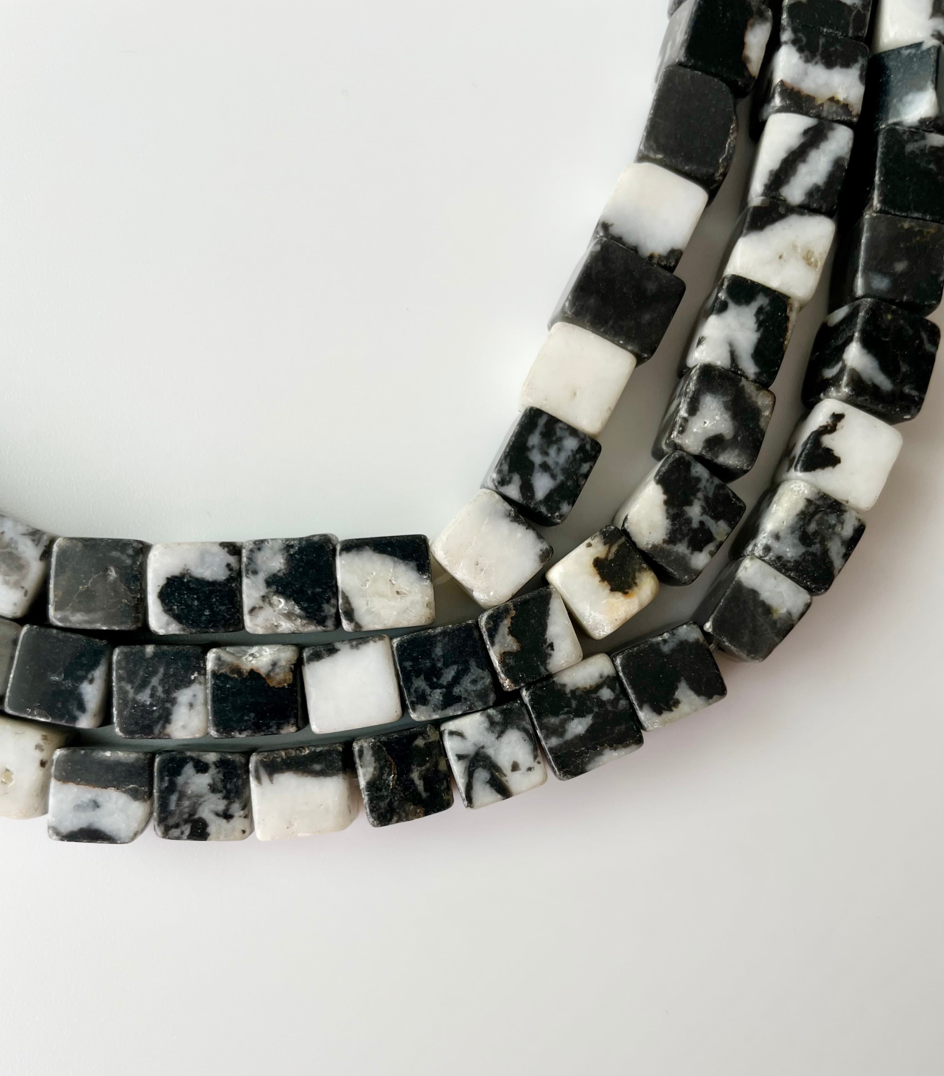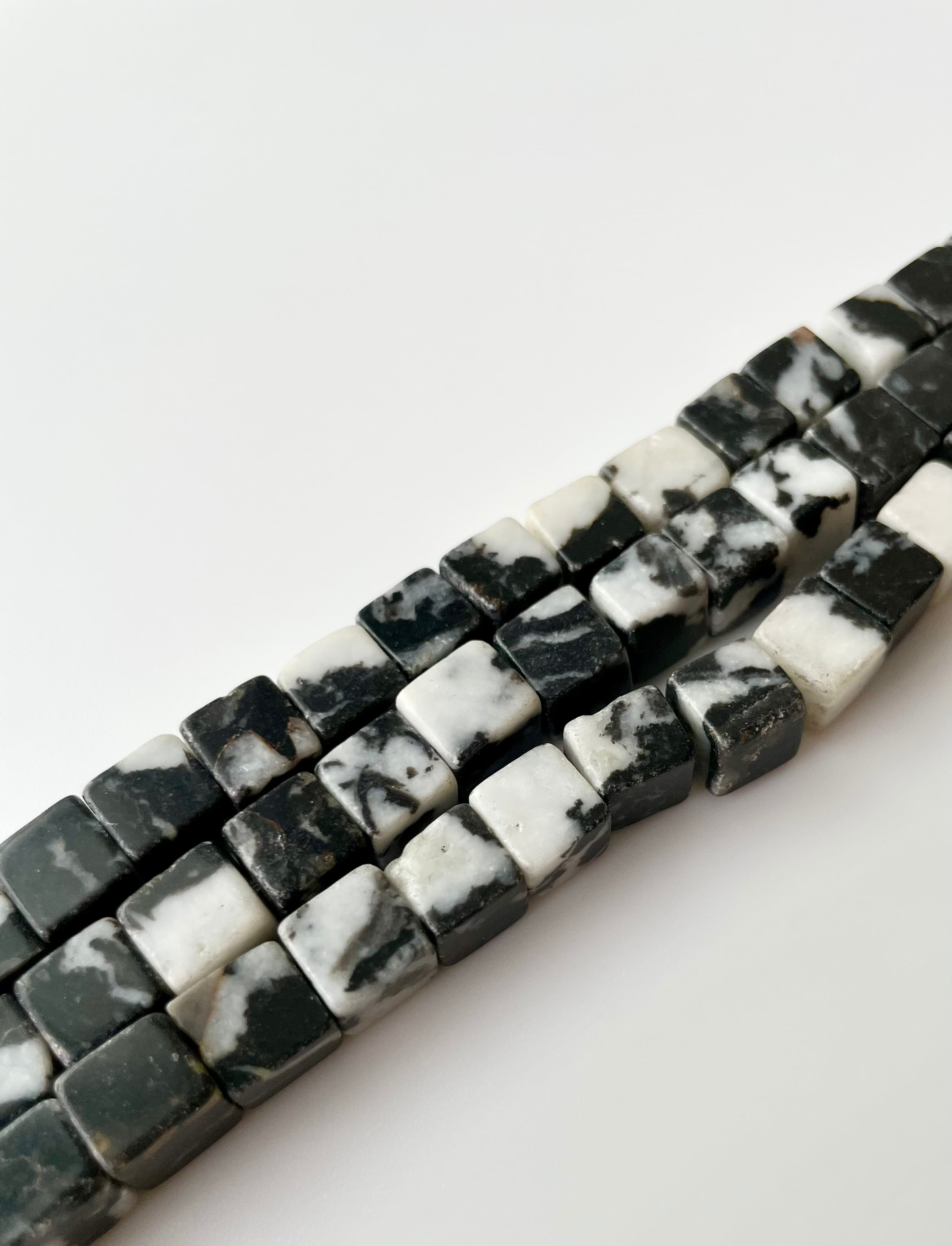 天然石ビーズ ゼブラストーン キューブ 約8mm 1連40cm(約47粒)