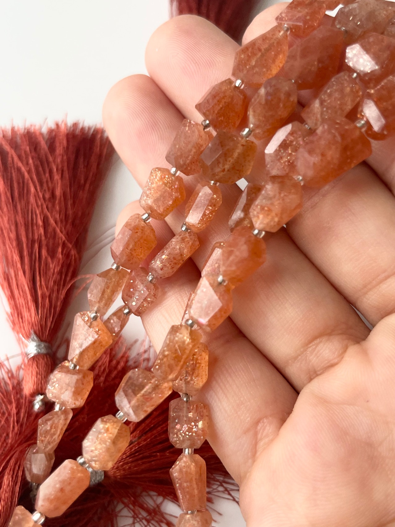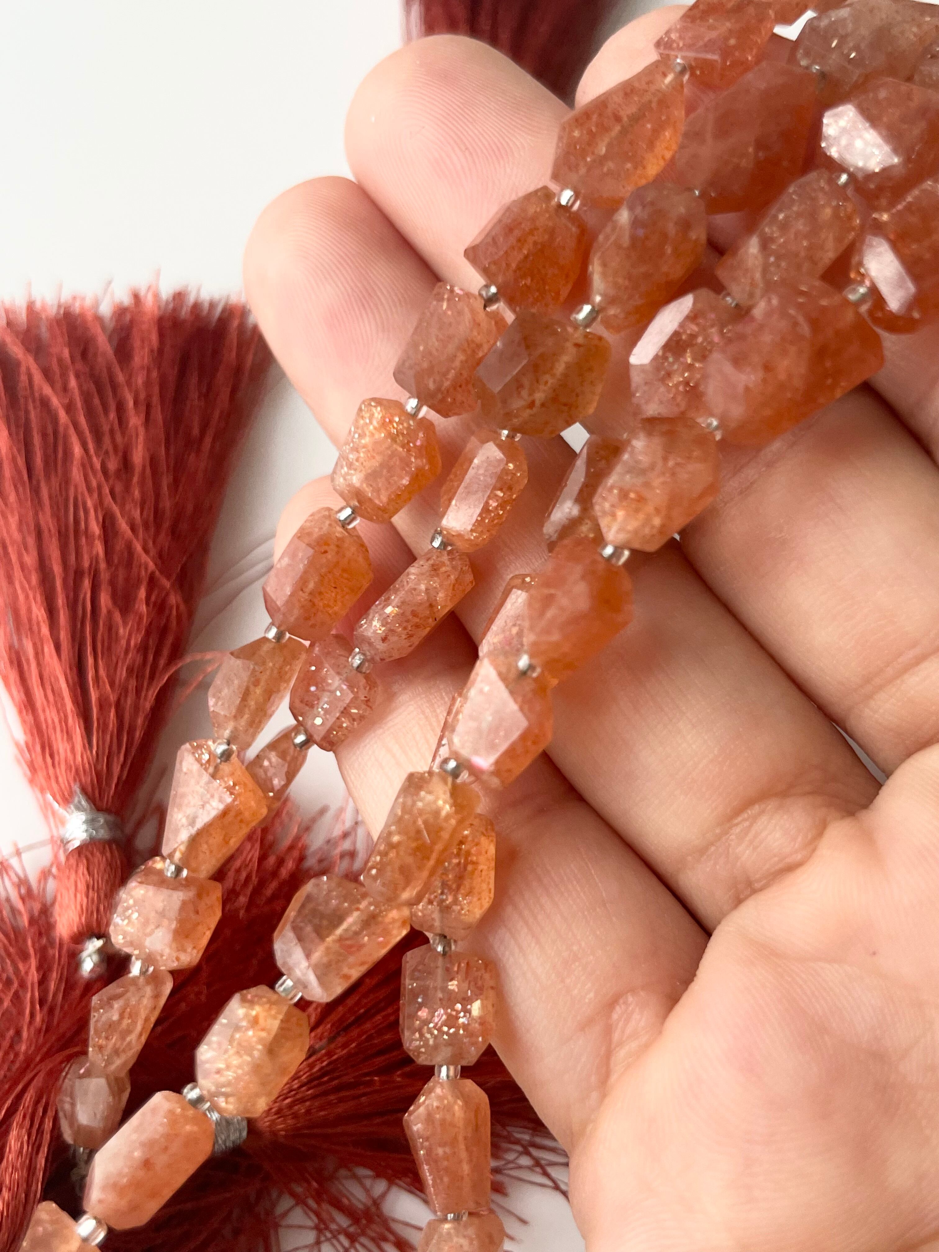 天然石 サンストーン ビーズ 1連(約14cm) オレンジブラウン系 ラメ感あり Gemup