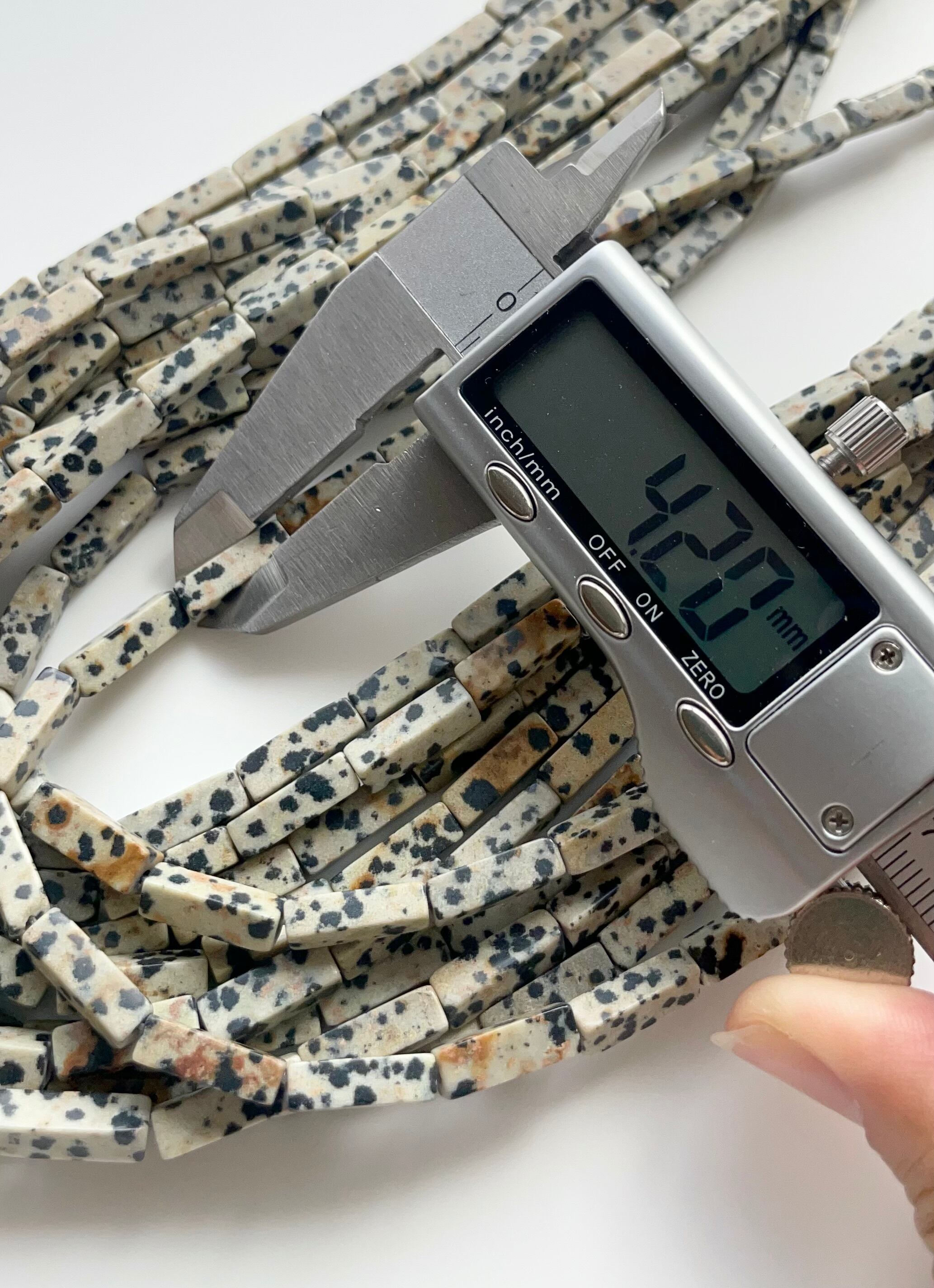 天然石ビーズ ダルメシアンジャスパー 長方形チューブビーズ 約13〜14mm 1連