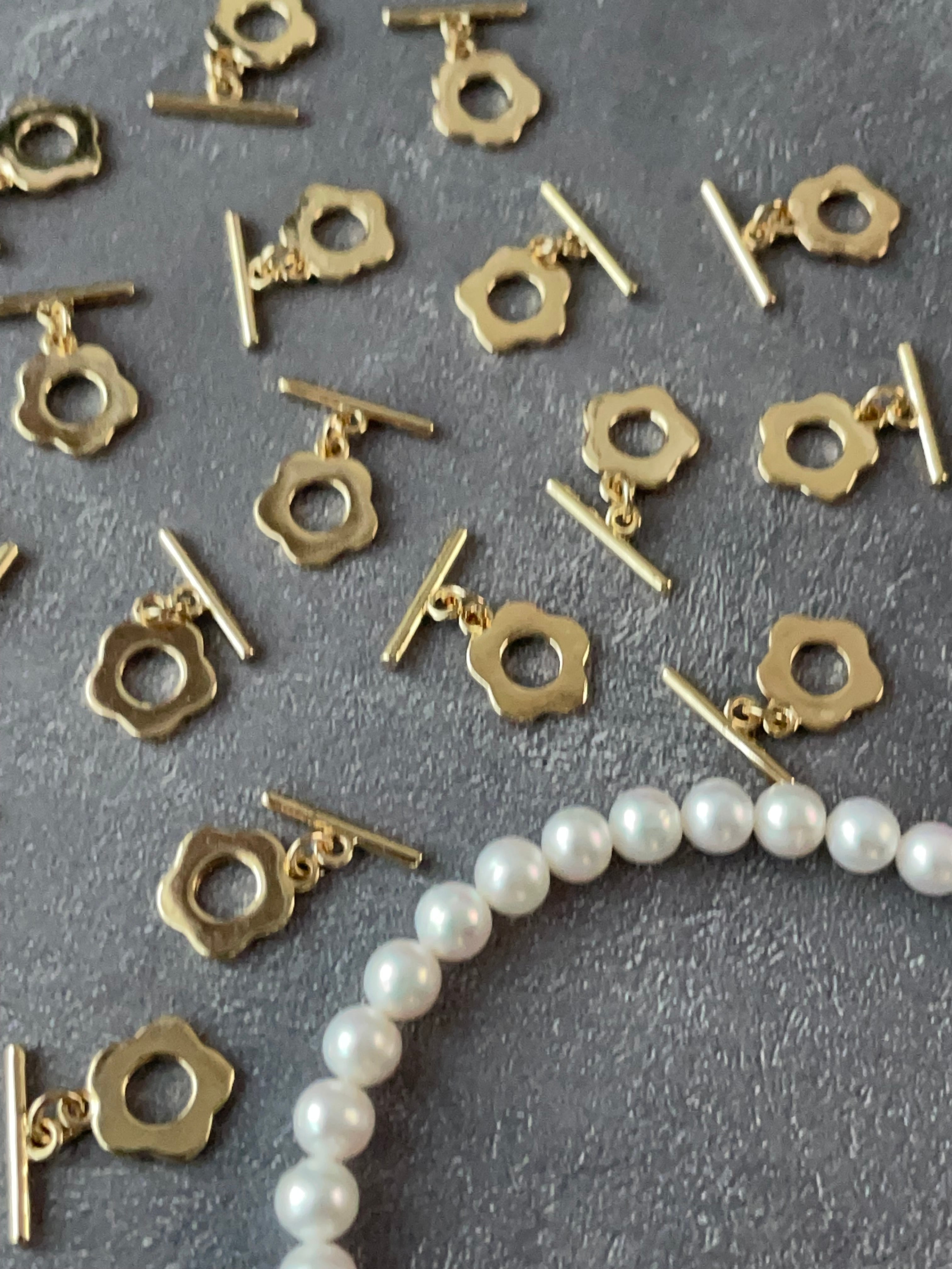 シンプルながらもほんのり華やかさをプラスでき、ネックレスやブレスレットの留め具としてお使いいただけます。