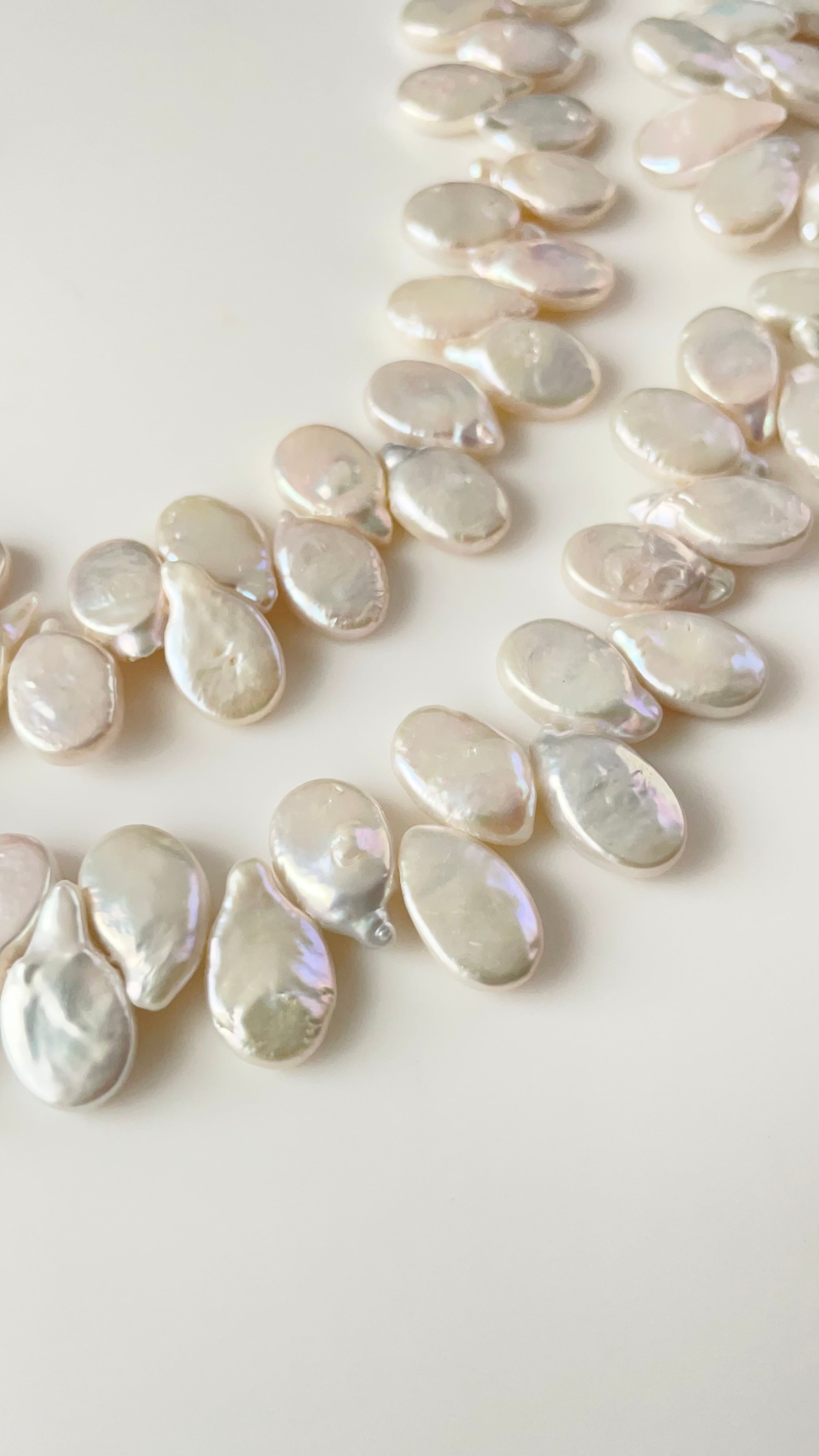 淡水パール フラットドロップ ホワイト 上部貫通 雫 天然素材 資材 連材 パーツ 通販 Gemup ジェンプ