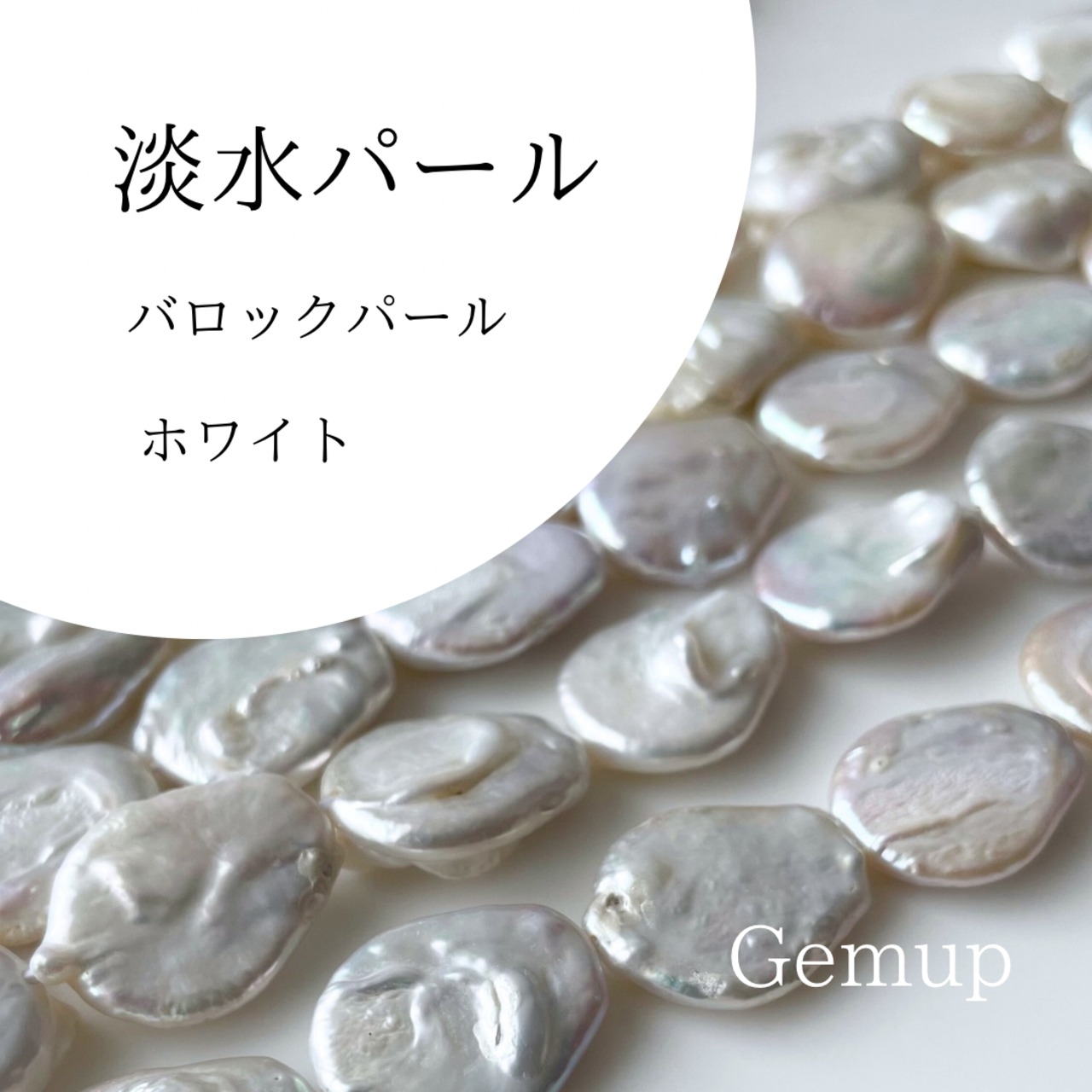 淡水パール バロックパール 白 縦長コイン ホワイト クリーム 天然素材 資材 連材 パーツ 通販 Gemup ジェンプ