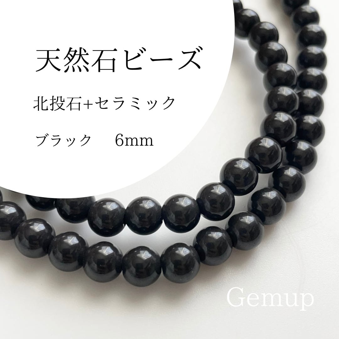 天然石ビーズ 北投石 ブラック 黒 6mm 天然素材 資材 連材 パーツ 通販 Gemup ジェンプ
