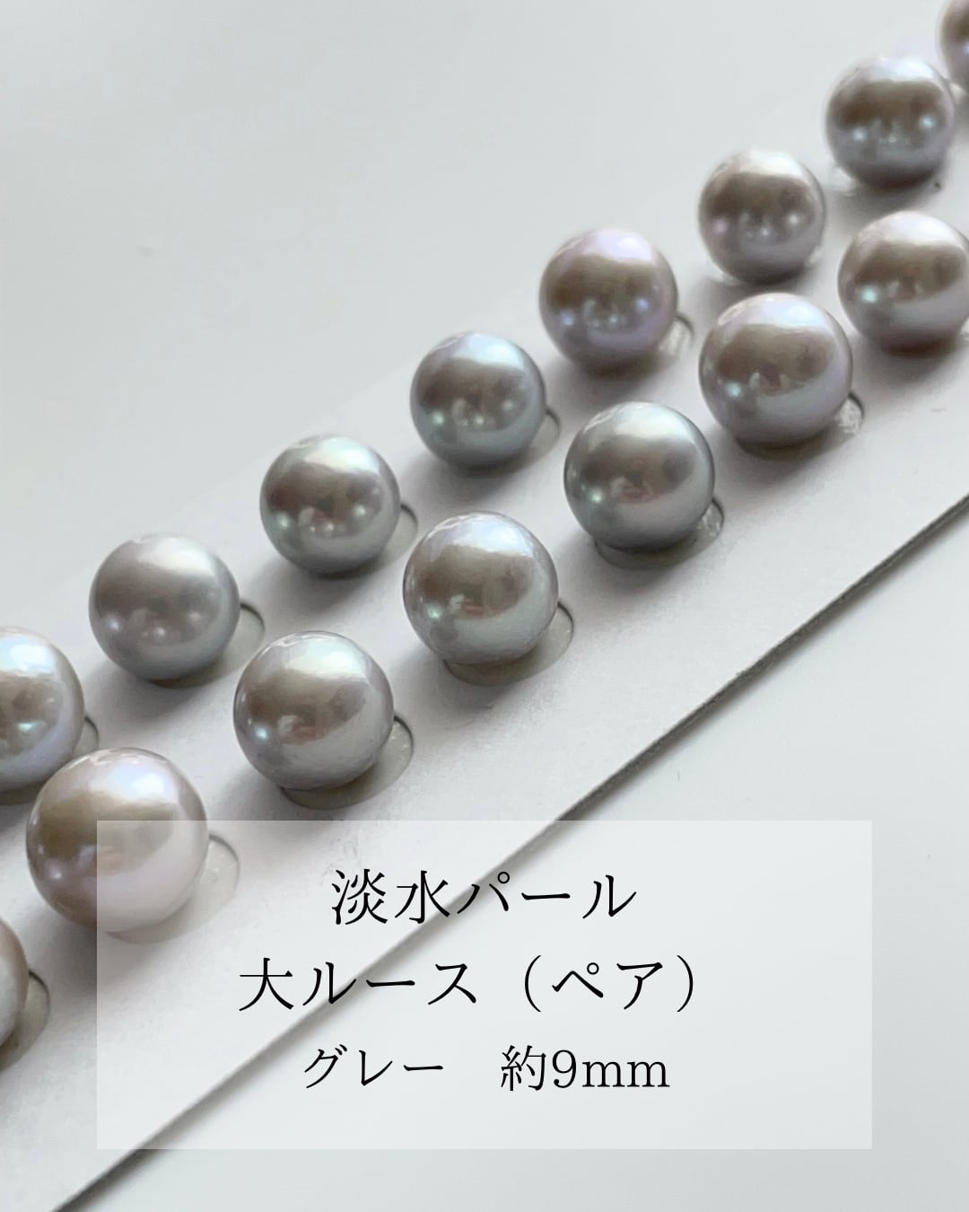 淡水パール ルース セミラウンド グレー ペア 9mm 片穴 天然素材 資材 連材 パーツ 通販 Gemup ジェンプ