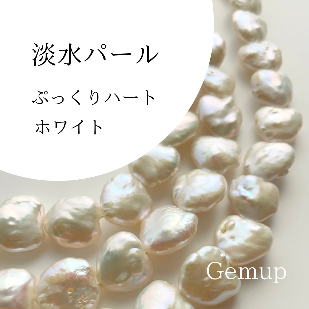 淡水パール ホワイト ハート ぷっくり 1連 天然素材 資材 連材 パーツ 通販 Gemup ジェンプ