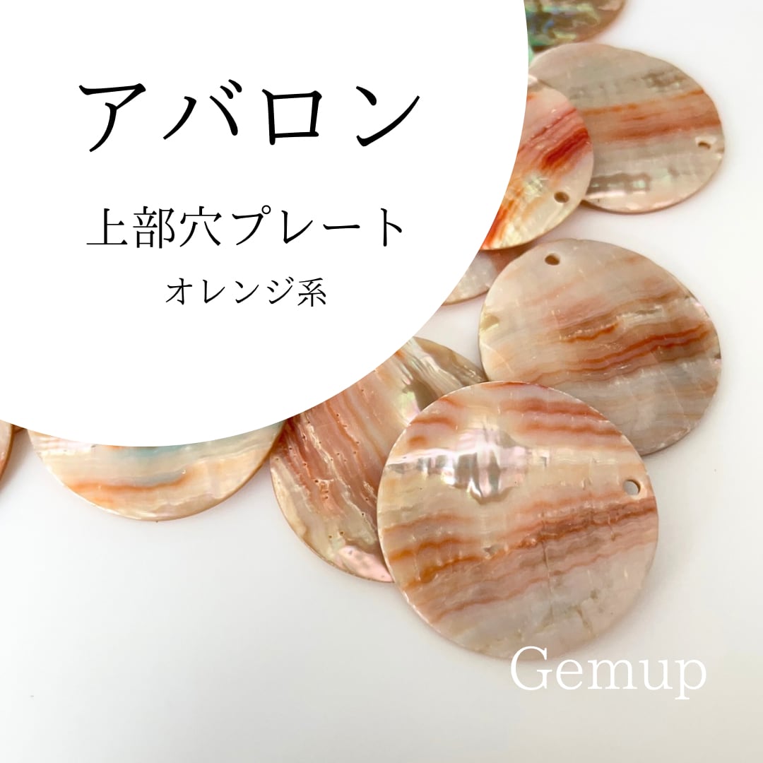 シェルビーズ アバロンシェル プレート 鮑 オレンジ ベージュ 約30mm 1枚 貫通穴あり アクセサリー素材 Gemup(ジェンプ)