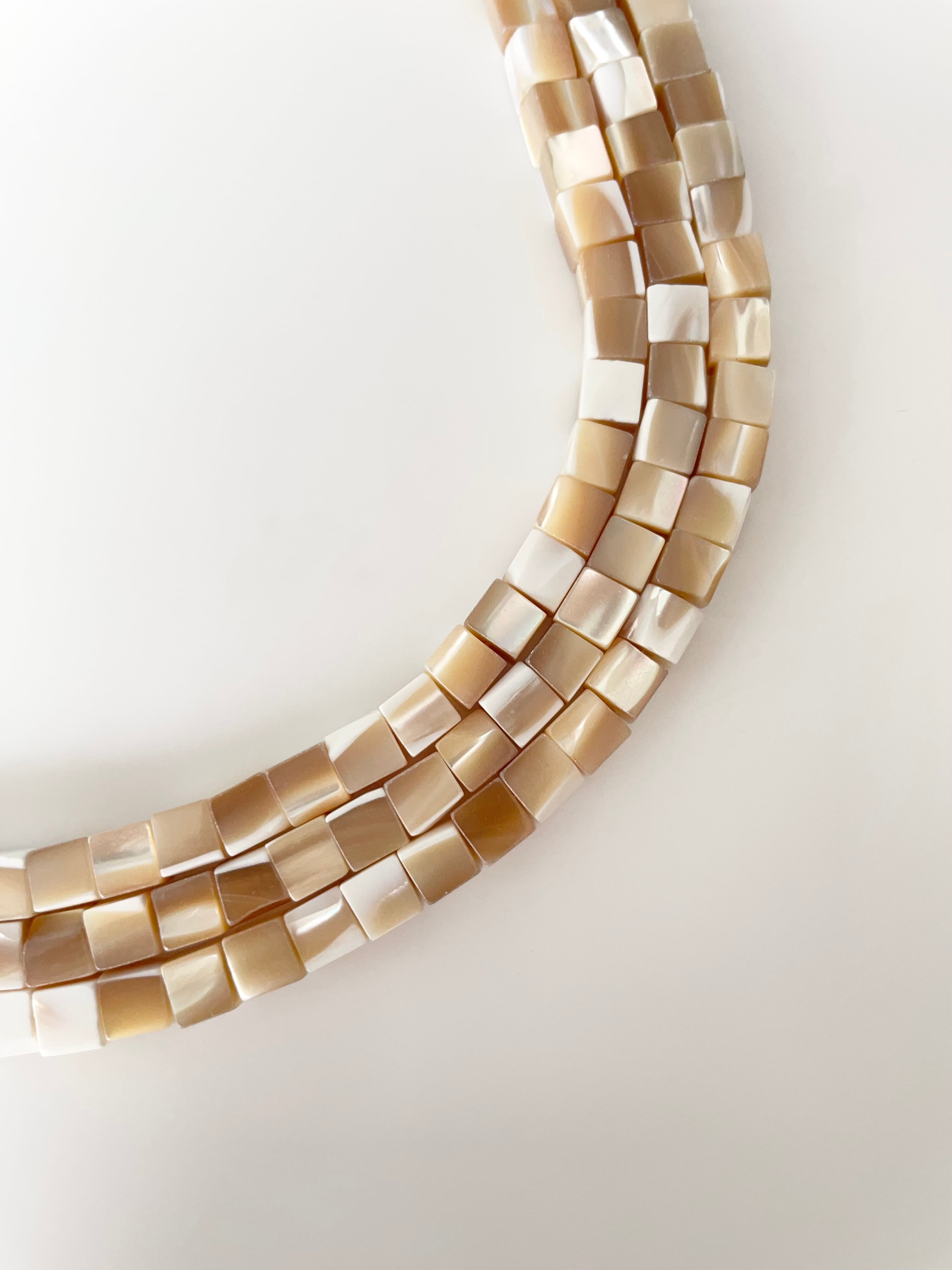 やわらかなベージュトーンが上品な、シェルビーズのキューブカットタイプです。