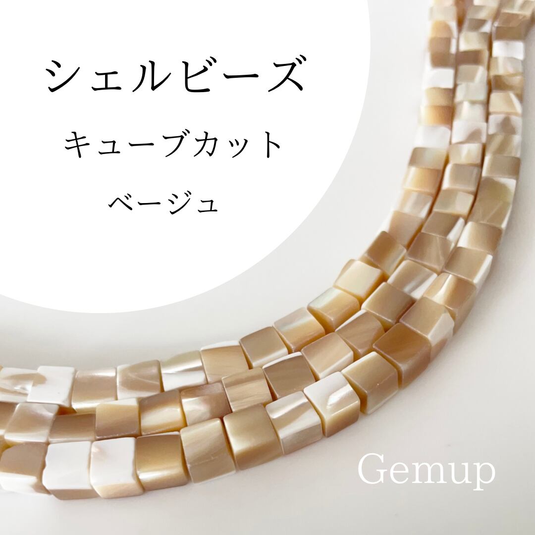 シェルビーズ キューブカット ベージュ 約6mm 1連 貫通穴あり アクセサリー素材 Gemup(ジェンプ)