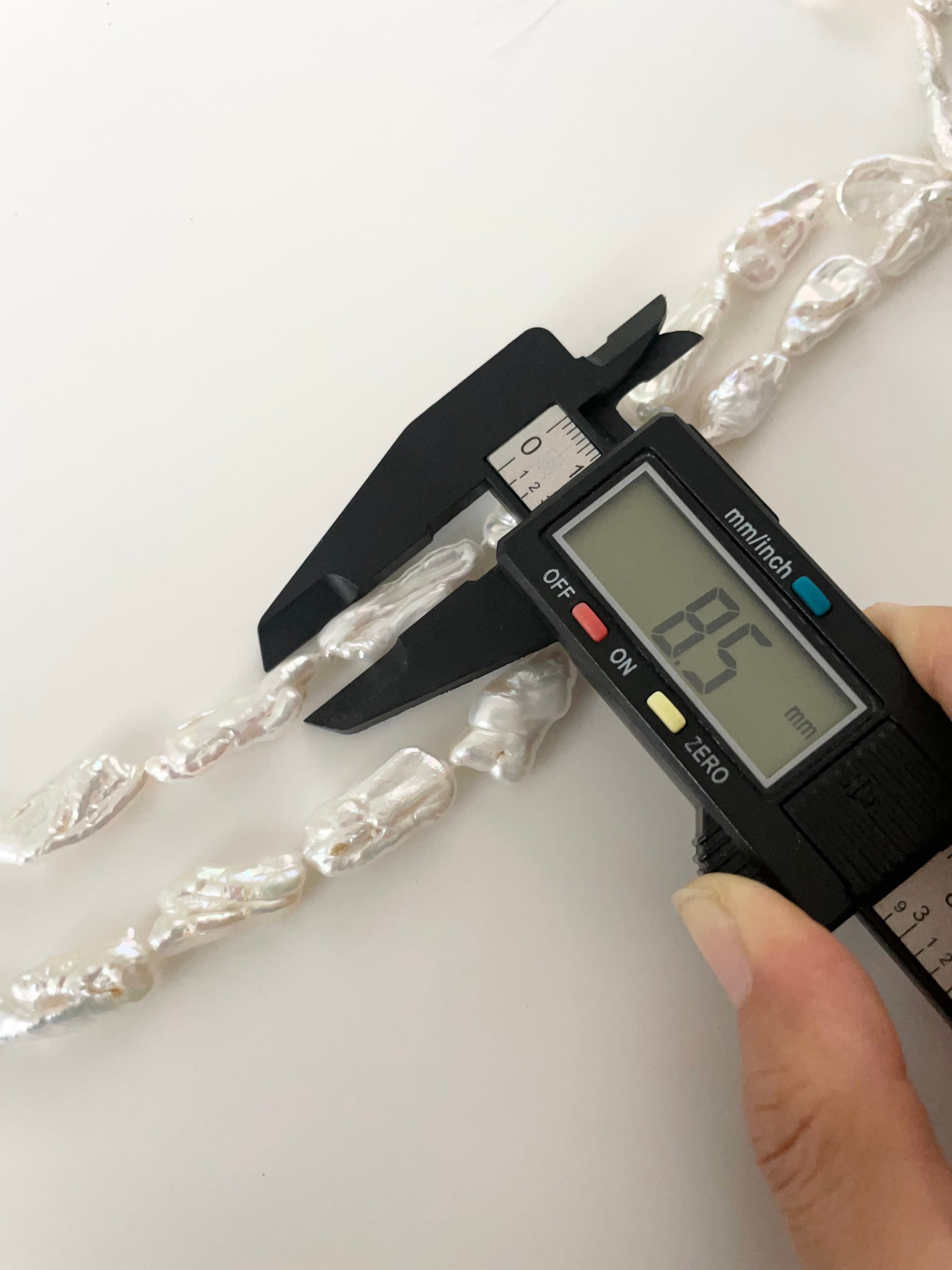 ビワのような縦長フォルムが特徴の、ホワイトカラーの淡水パール。