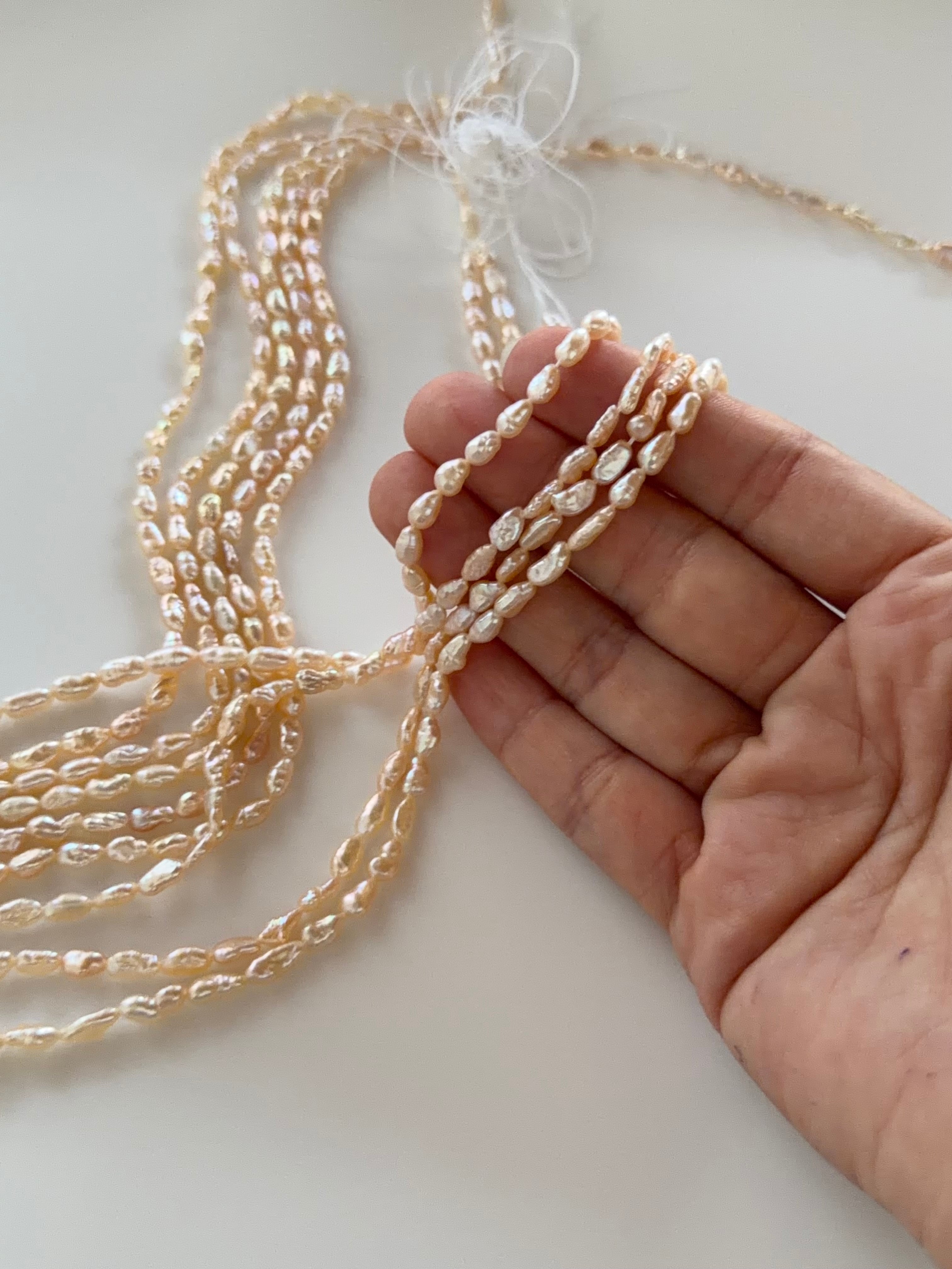 しゅわしゅわとした独特の質感が魅力の、ライス型淡水パールです。