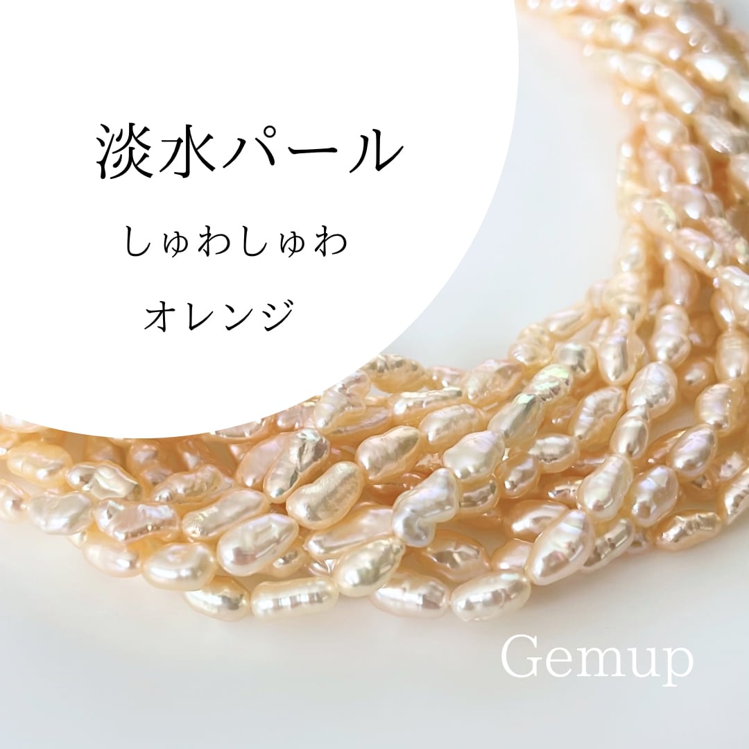 淡水パール しゅわしゅわ ライス型 オレンジ ゴールド系 約3〜4mm 1連 真珠 パール ハンドメイド 資材 アクセサリー