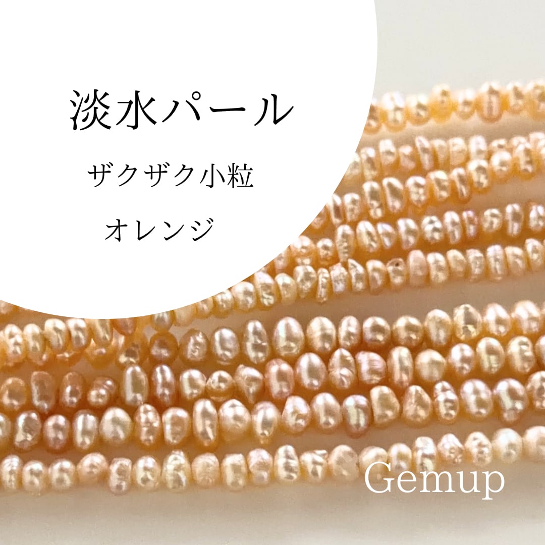 淡水パール ザクザク小粒 オレンジ 約2〜3mm 1連 約40cm 穴あり