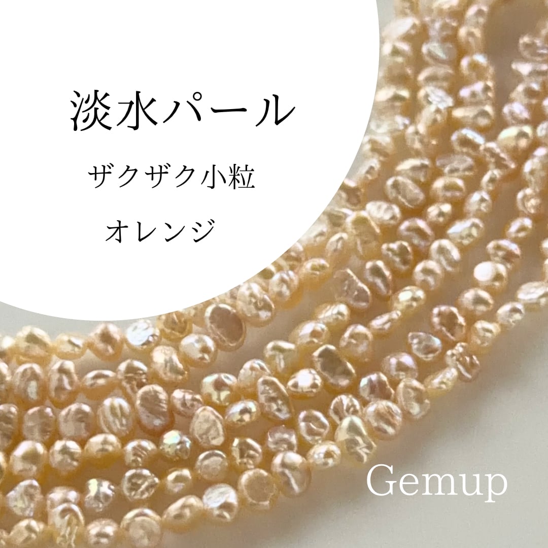 淡水パール フラット小粒 オレンジ 約4.5mm 1連 約41cm 穴あり