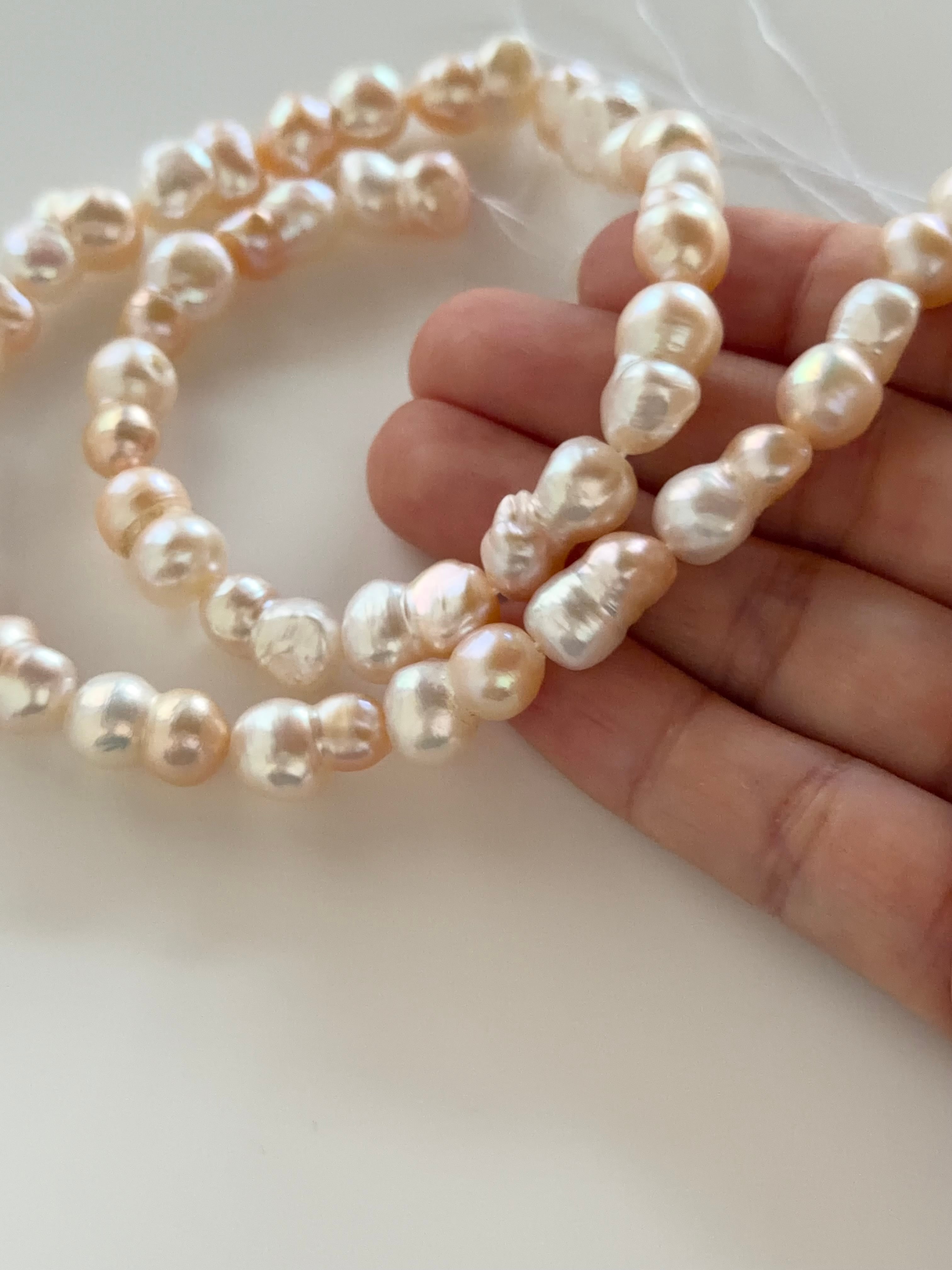 淡水パール ツートンツイン オレンジ×ホワイト 約9×15mm 1連 穴あり