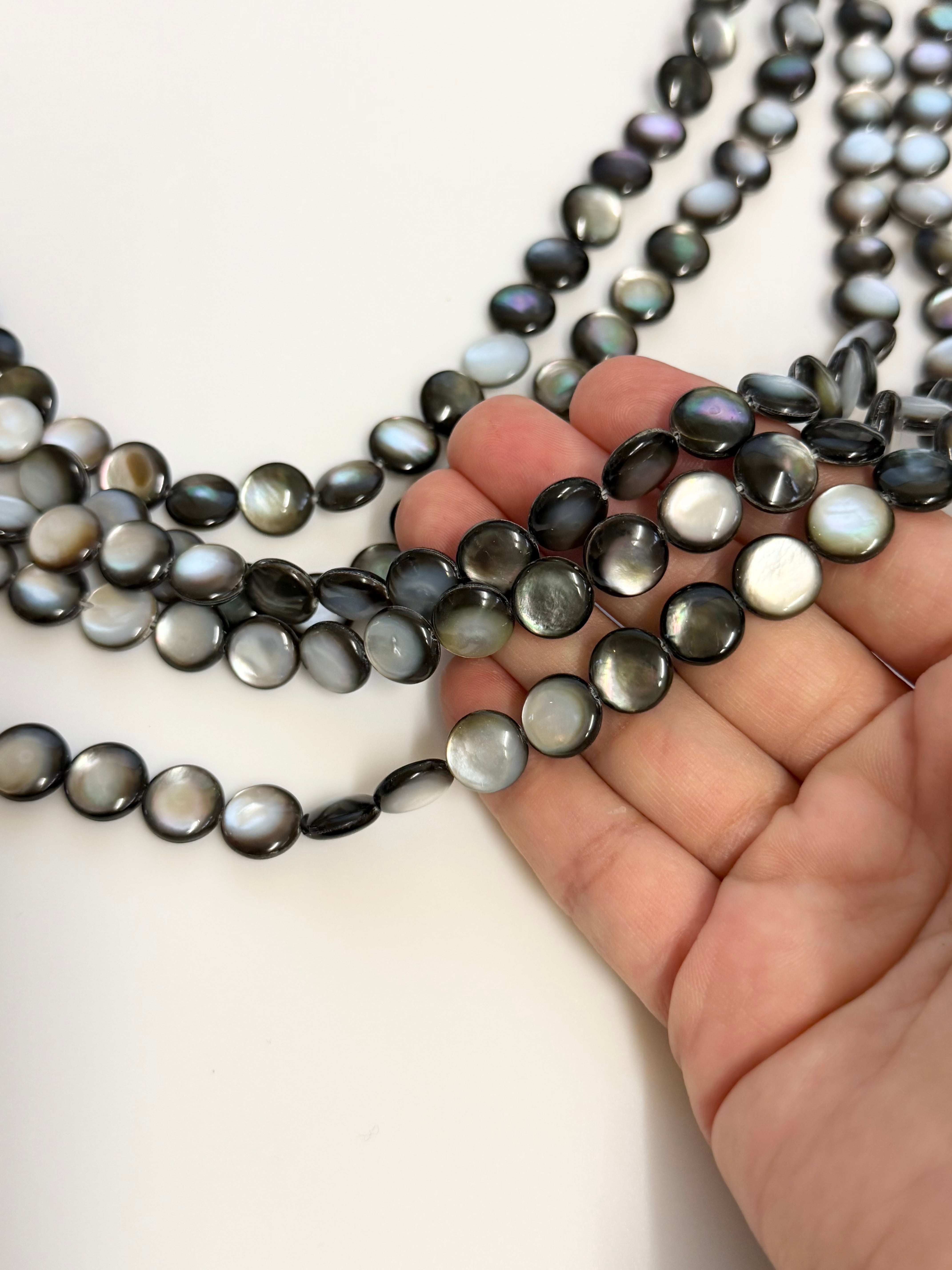 ブラックシェル ラウンド フラット 10mm 1連40cm ビーズ Gemup ジェンプ