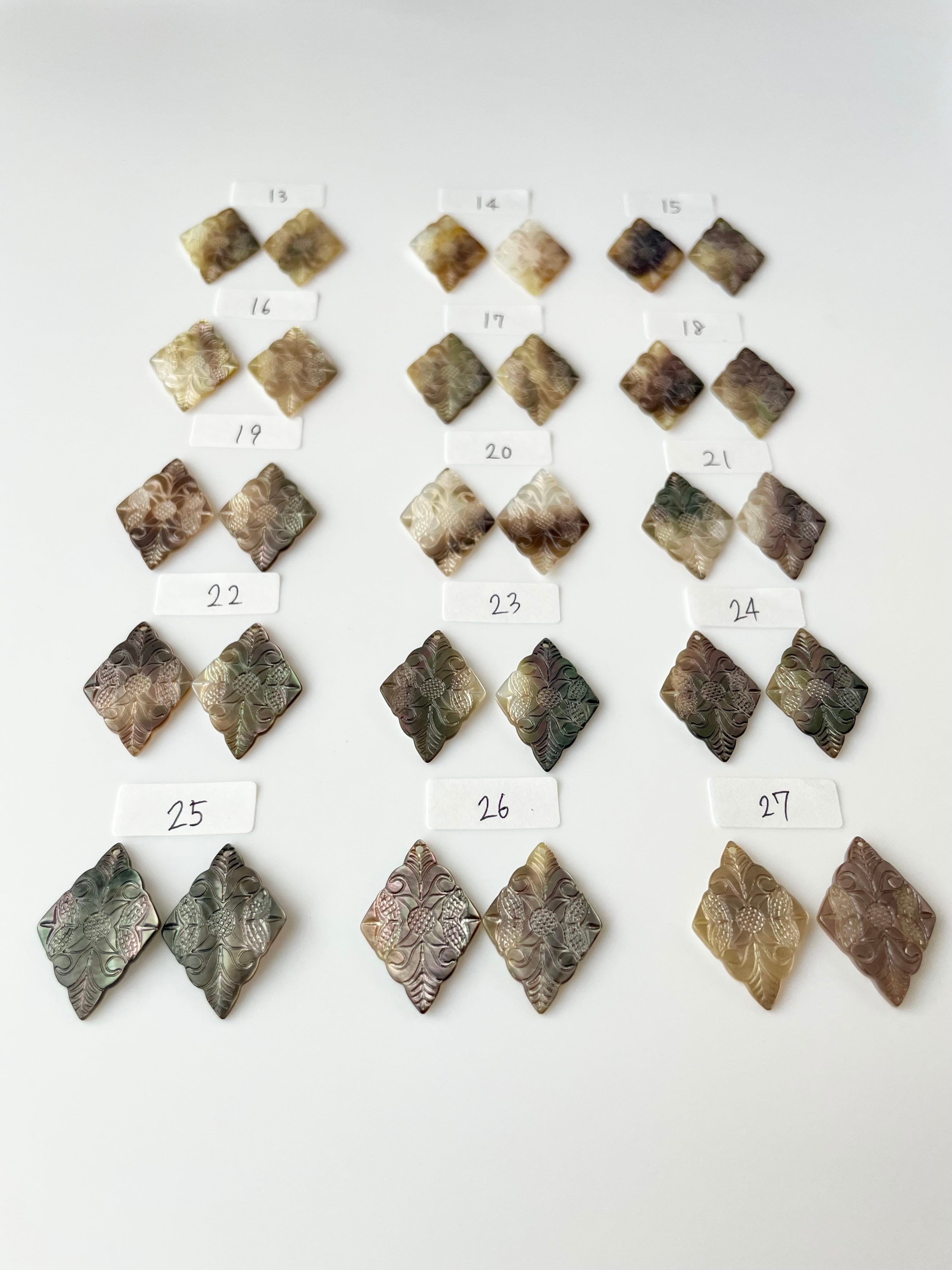天然シェル 刻印模様プレート ひし形 ダイヤ 貝 素材 パーツ